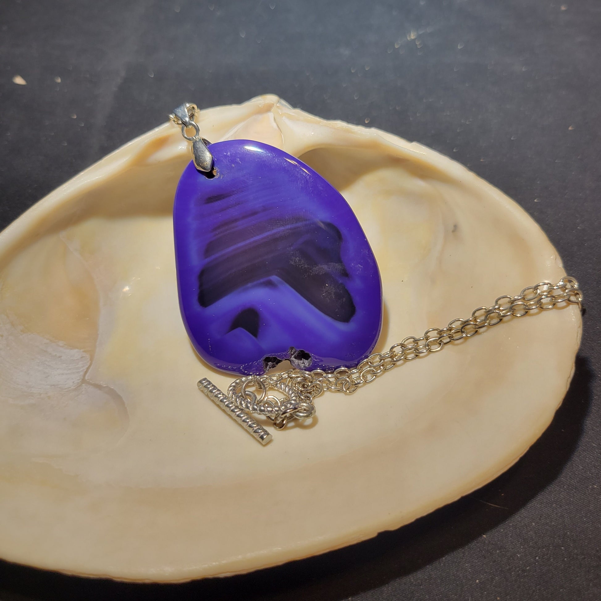 Make a statement with this beautiful agate pendant necklace! Handcrafted with a stunning dyed agate stone, it adds a stylish and stunning touch to any outfit. Its bold color and unique design make it the perfect accessory for your wardrobe.