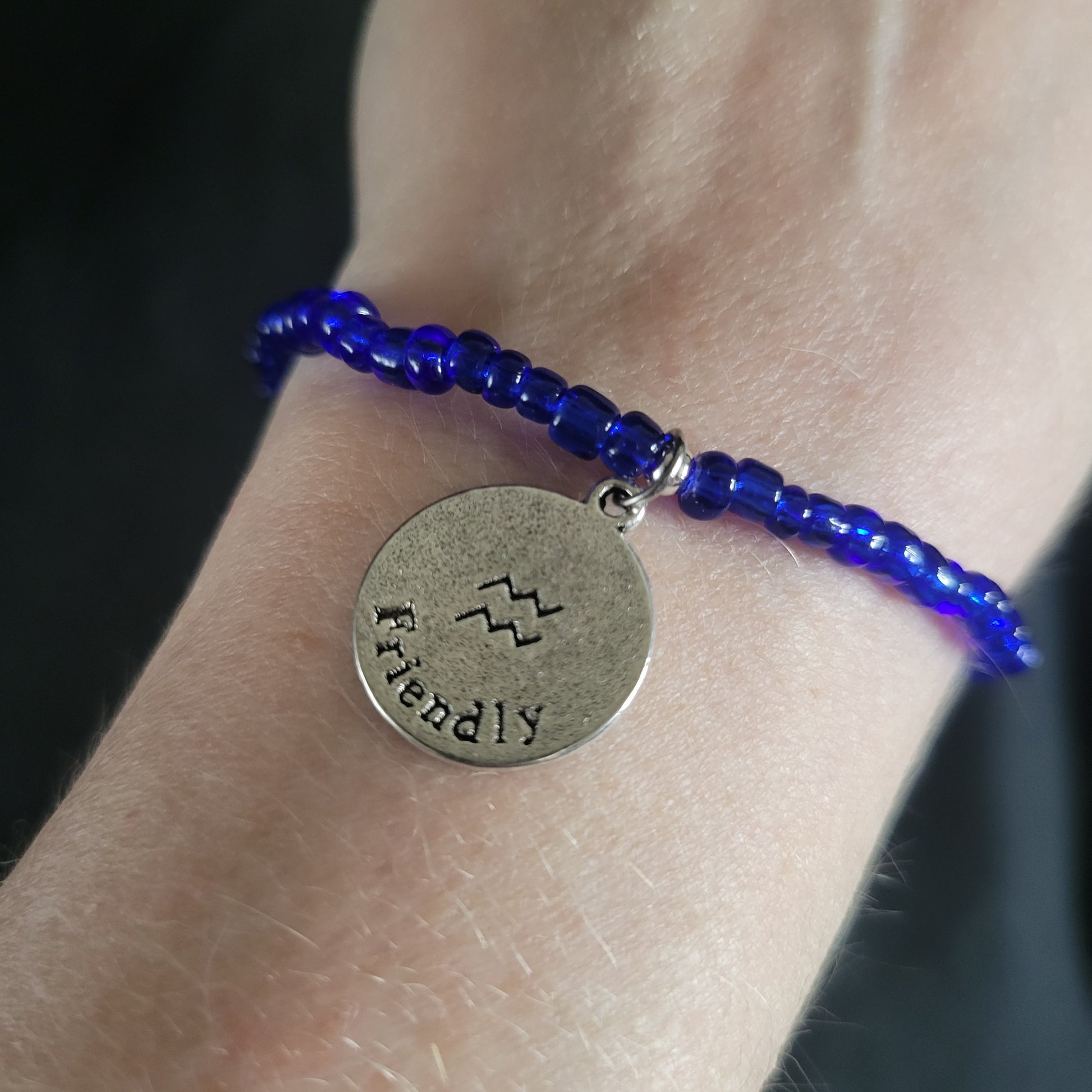 Indulge your inner water carrier with our Aquarius Beaded Bracelet! The royal blue beads shine and shimmer as they wrap around your wrist, perfectly complementing the delicate Aquarius charm. Made with elastic for a comfortable fit, this bracelet is a must-have for any Aquarius.