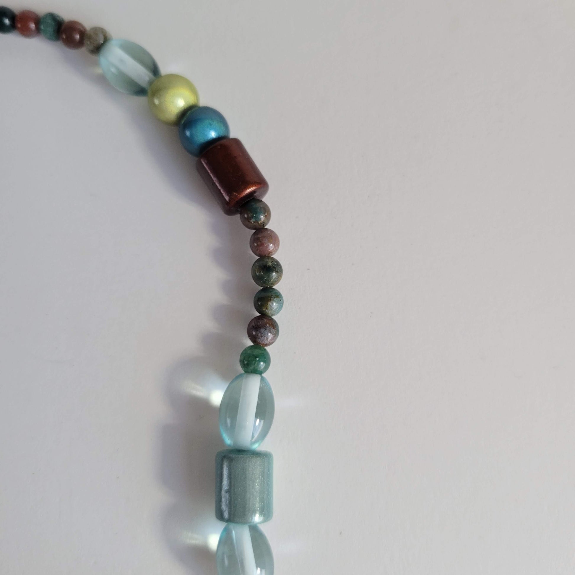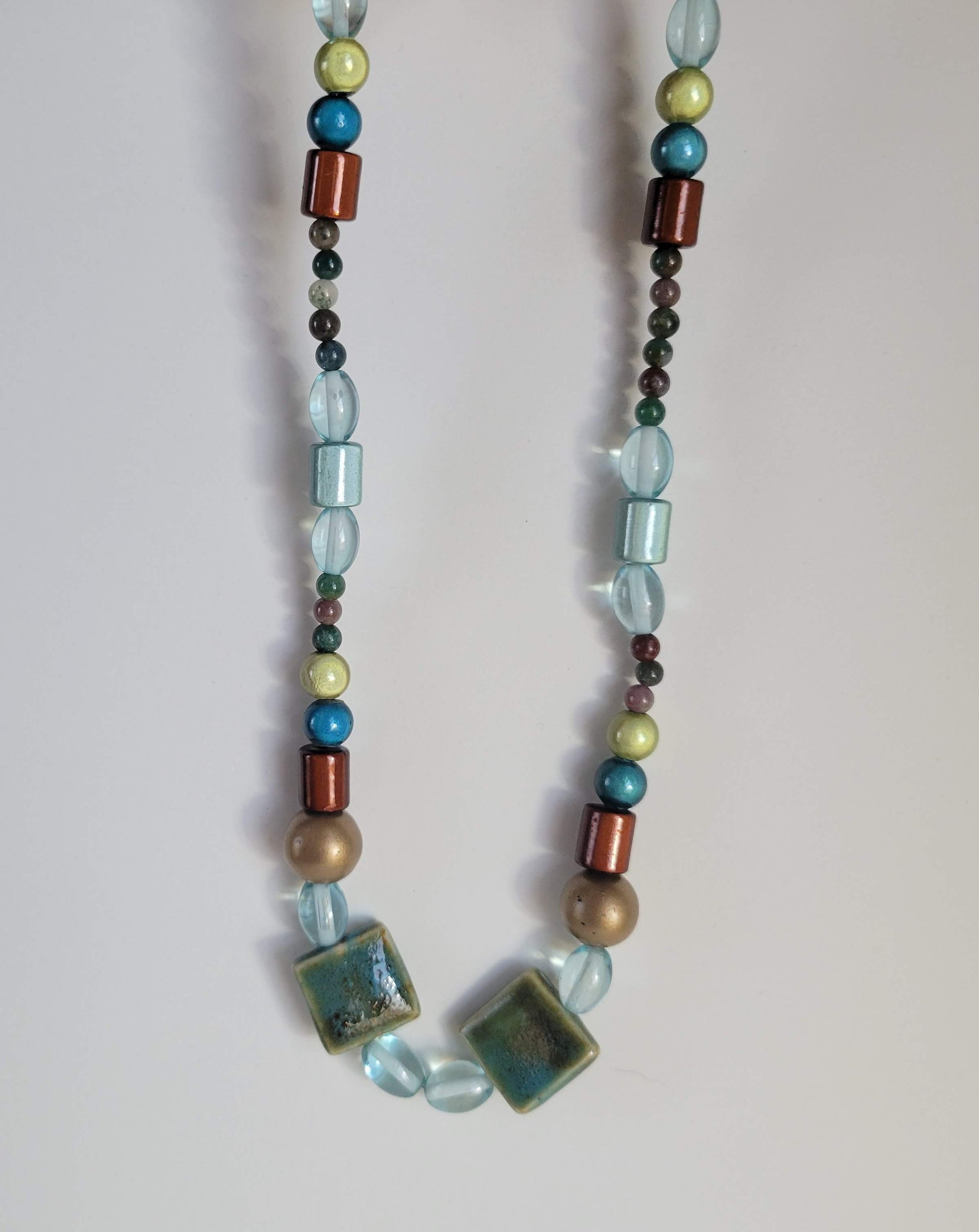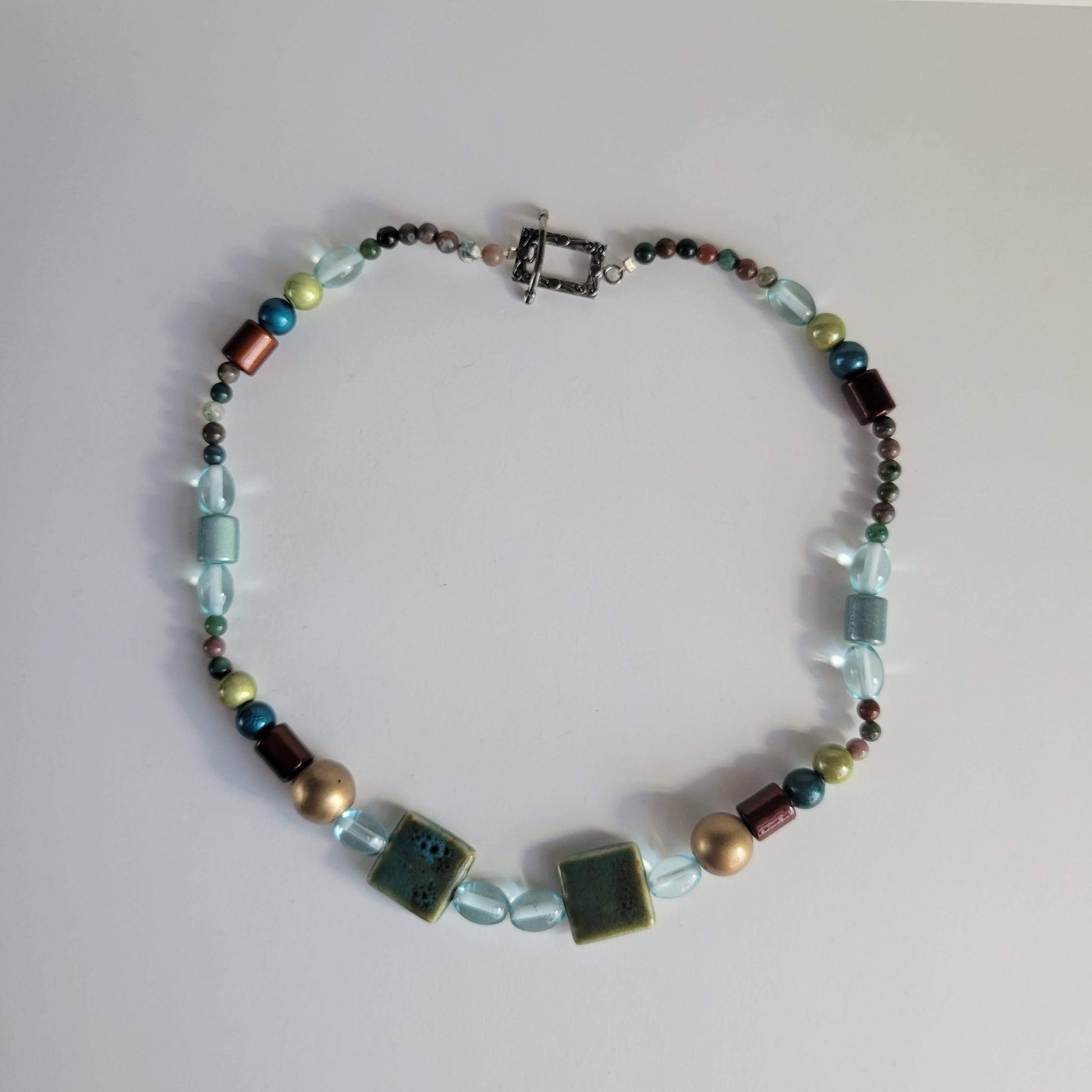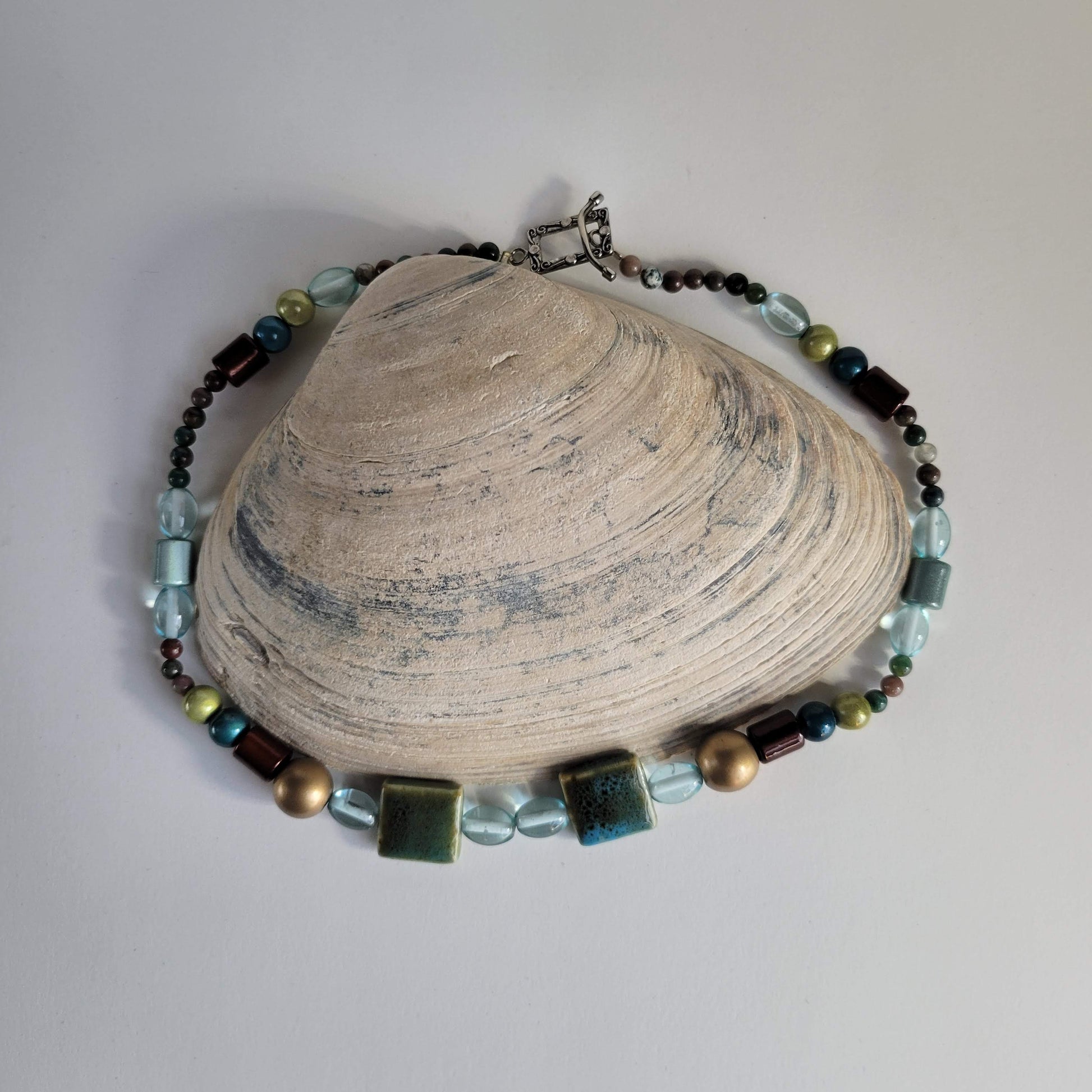 assorted brown hue glass beads on 17.5" wire with rectangle toggle clasp