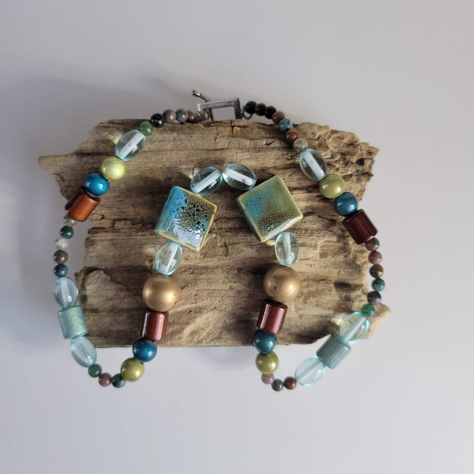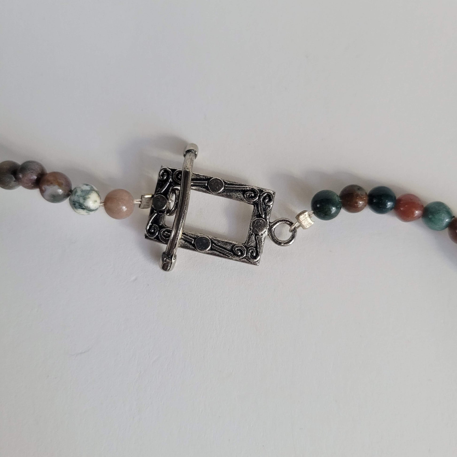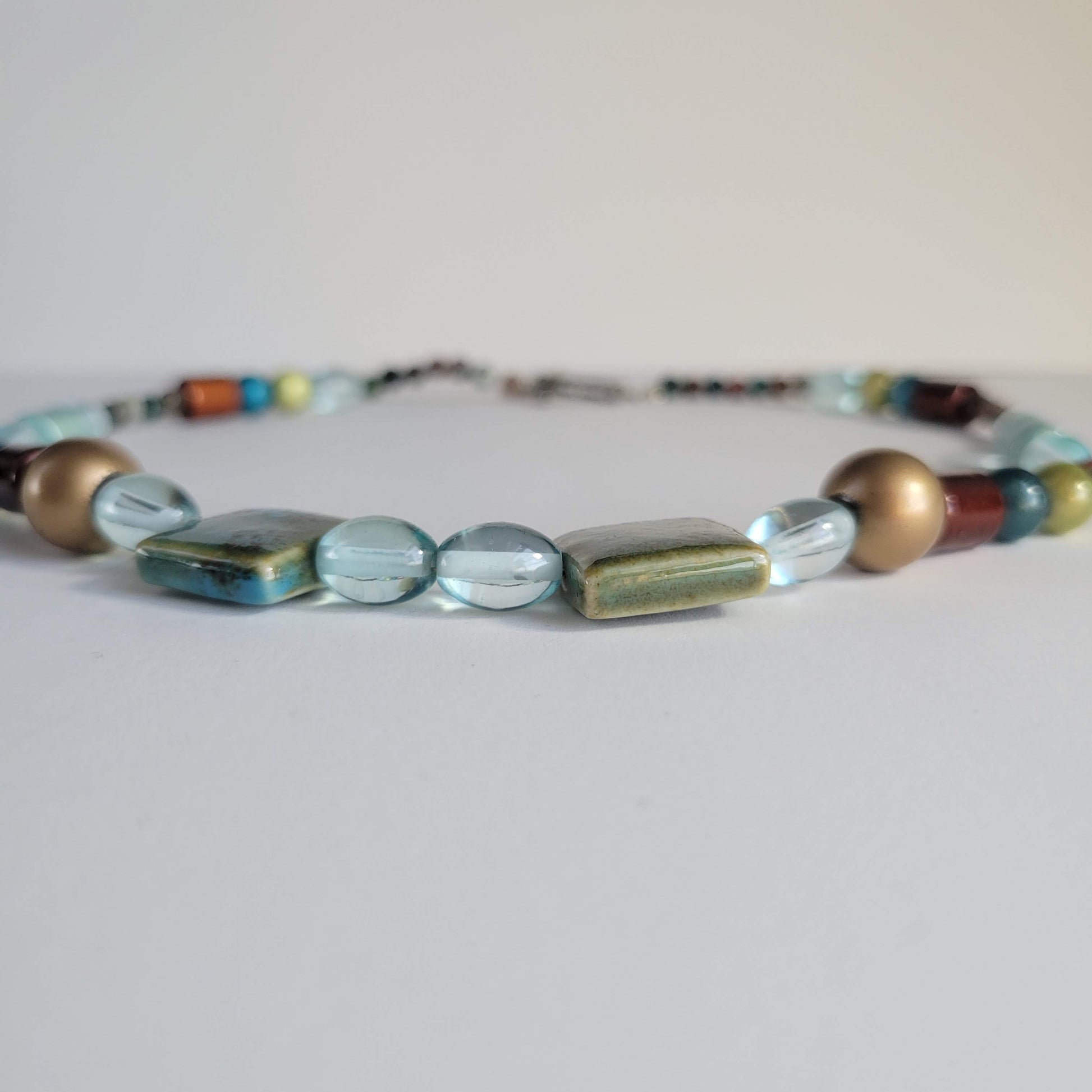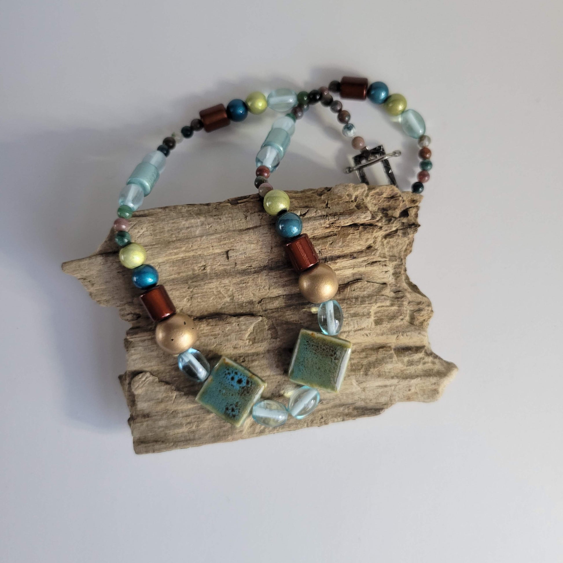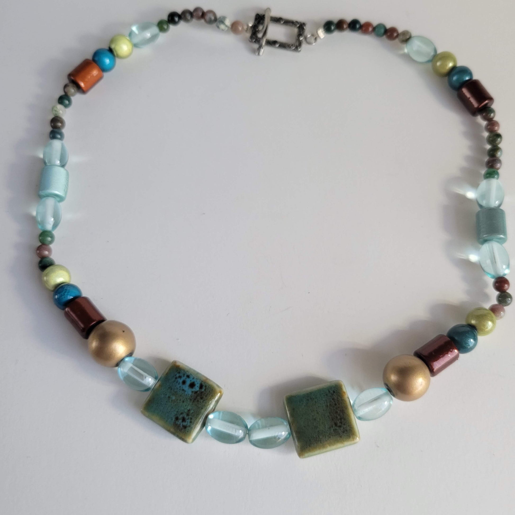 assorted brown hue glass beads on 17.5" wire with rectangle toggle clasp