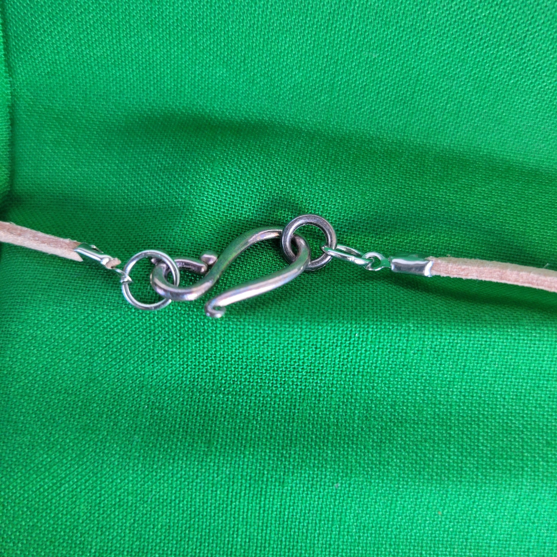A modern, edgy look made from a rectangular black glass bead and soft leather around the neck. Spice up any outfit with this unique and stylish necklace, offering a versatile and creative way to accessorize!