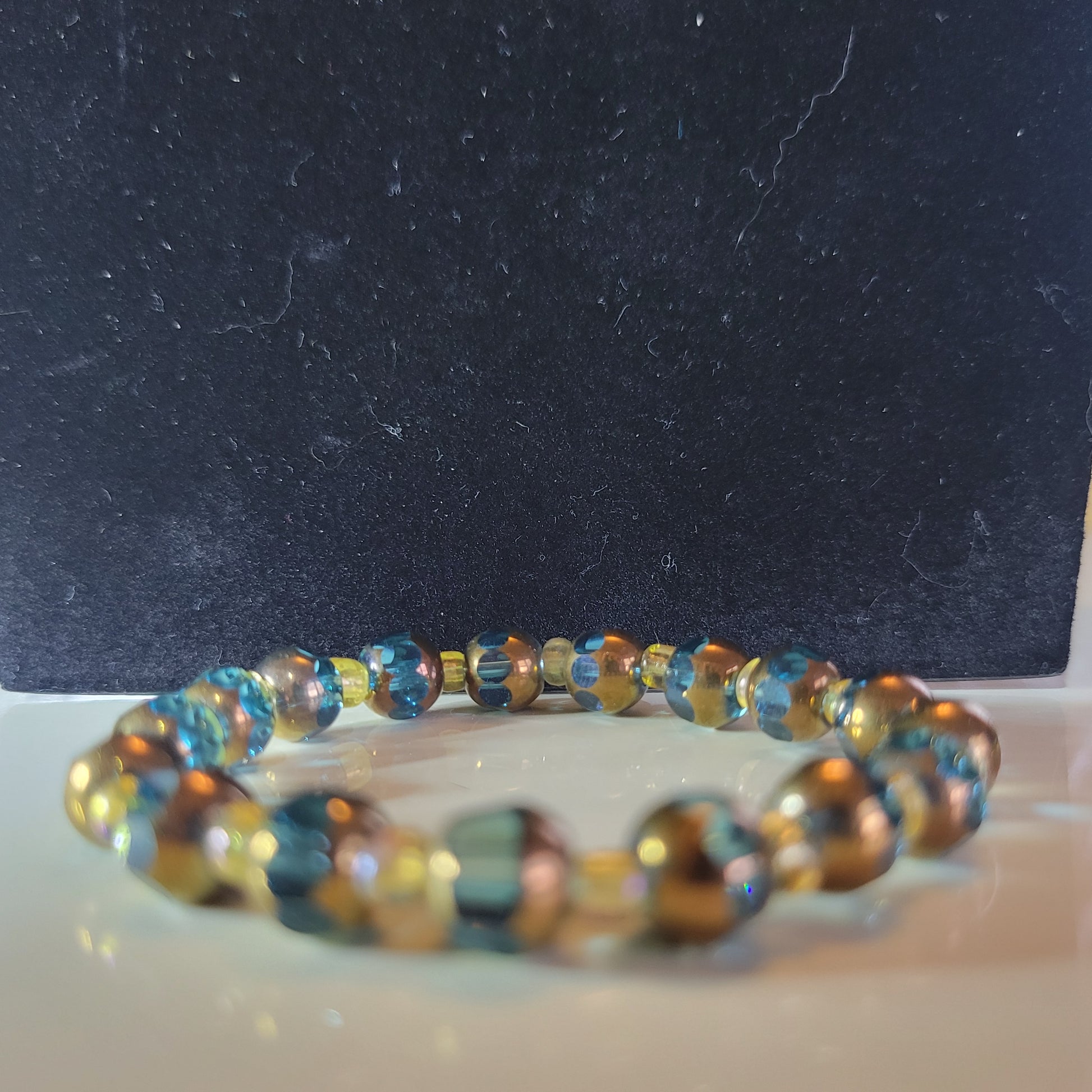 Add some color to your accessories with our Blue and Gold Beaded Bracelet. The combination of blue beads with a bronze finish along with gold beads creates a unique and stylish design that is sure to catch eyes. No need to be blue when you have this bracelet on your wrist!