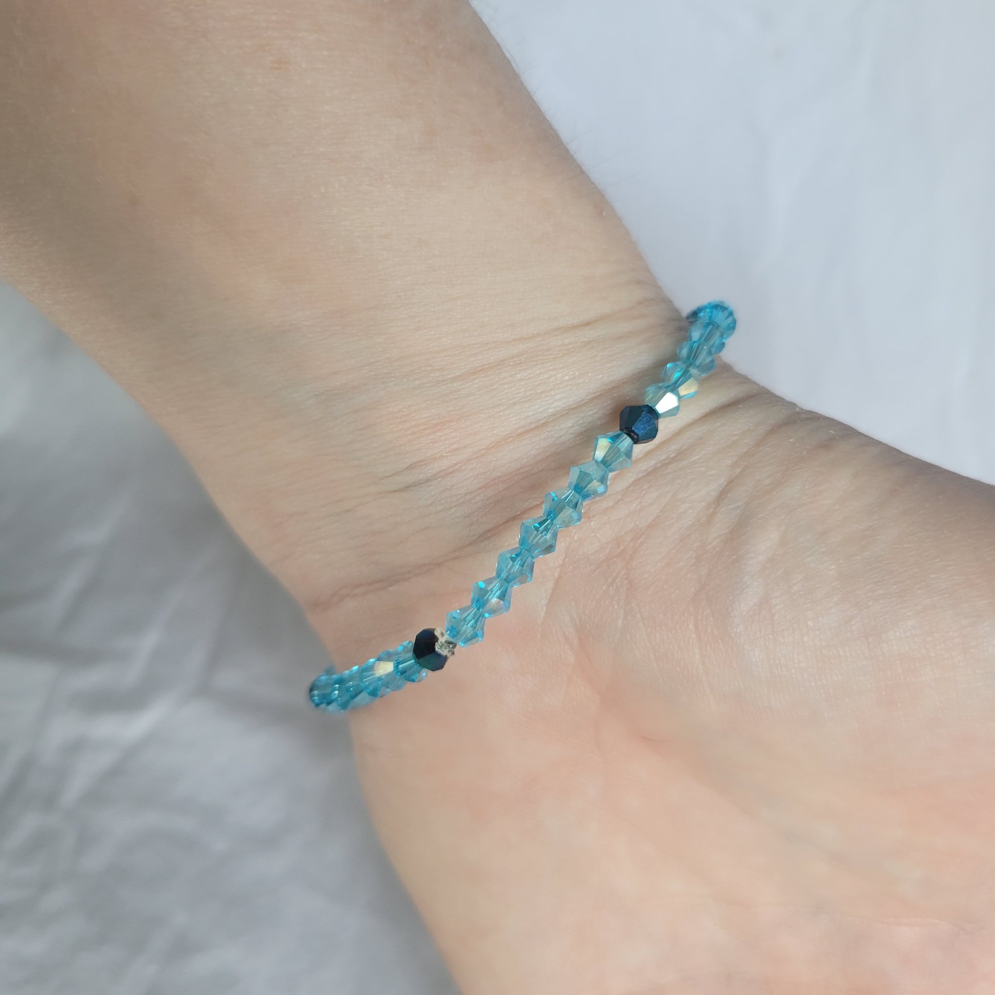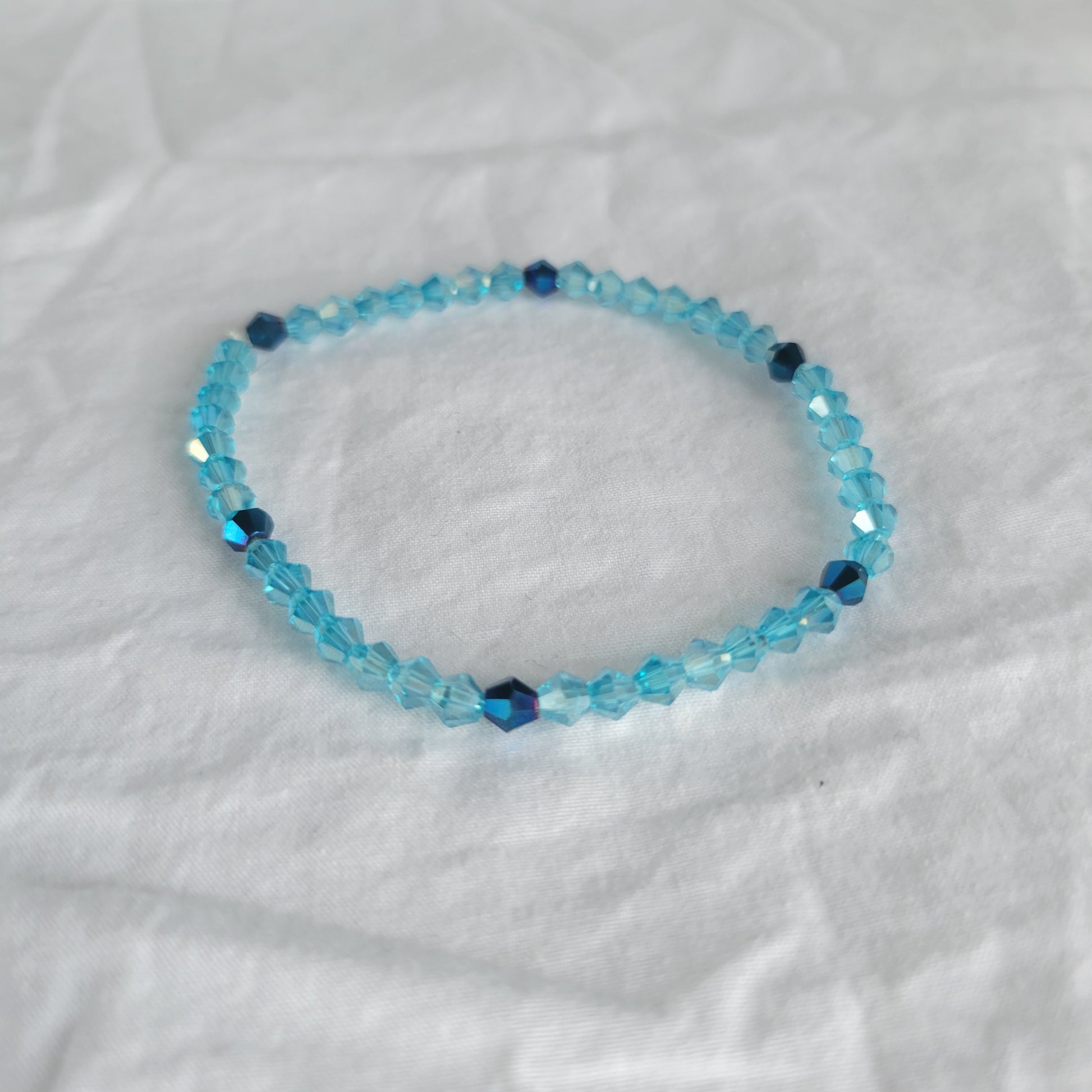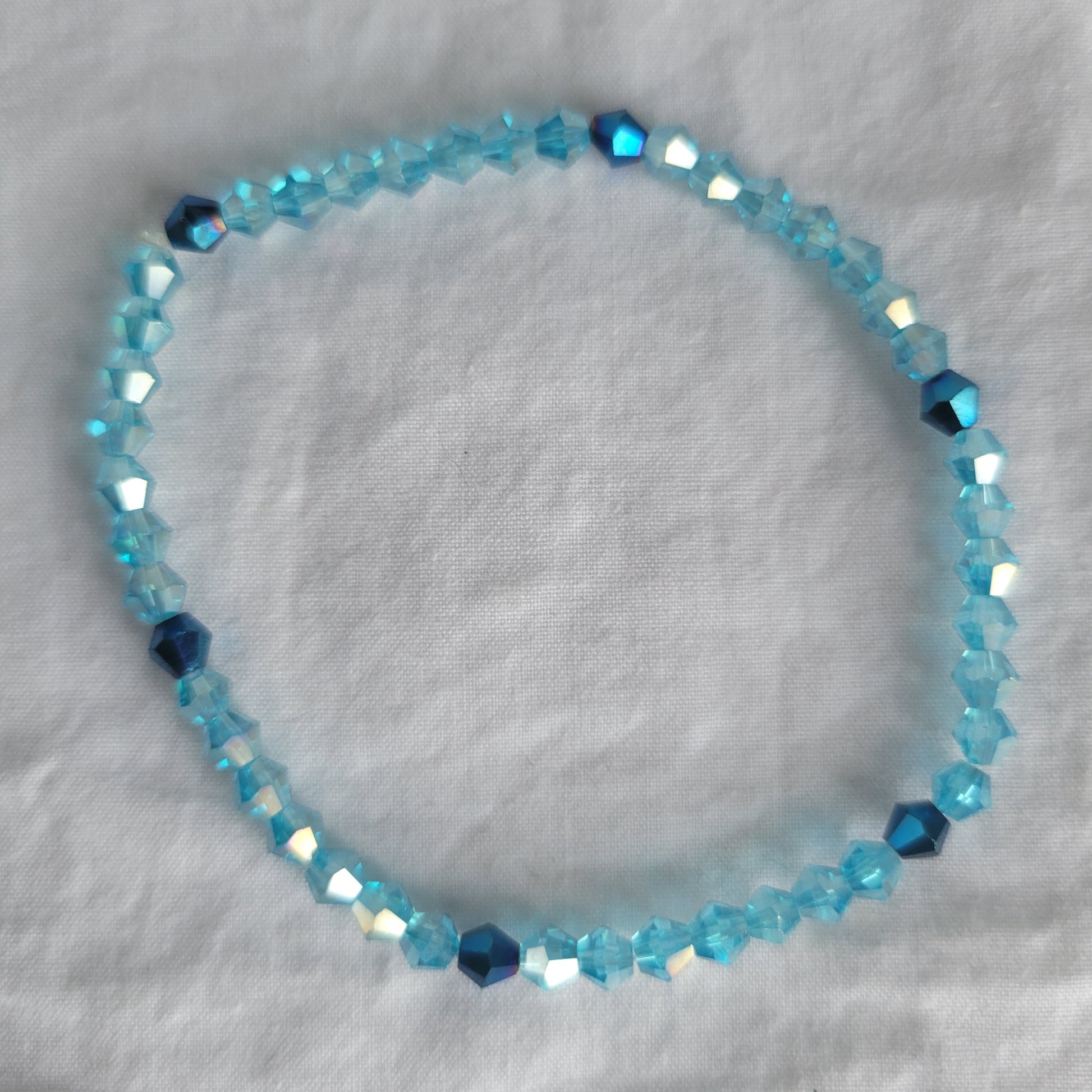 Add some vibrancy to your wrist with our Blue Beaded Bracelet! This unique piece features light blue and royal metallic bicone beads on an elastic band, for a comfortable and stylish accessory that's sure to make a statement. Why wait? Get your own today and discover the one-of-a-kind beauty of our Blue Beaded Bracelet!