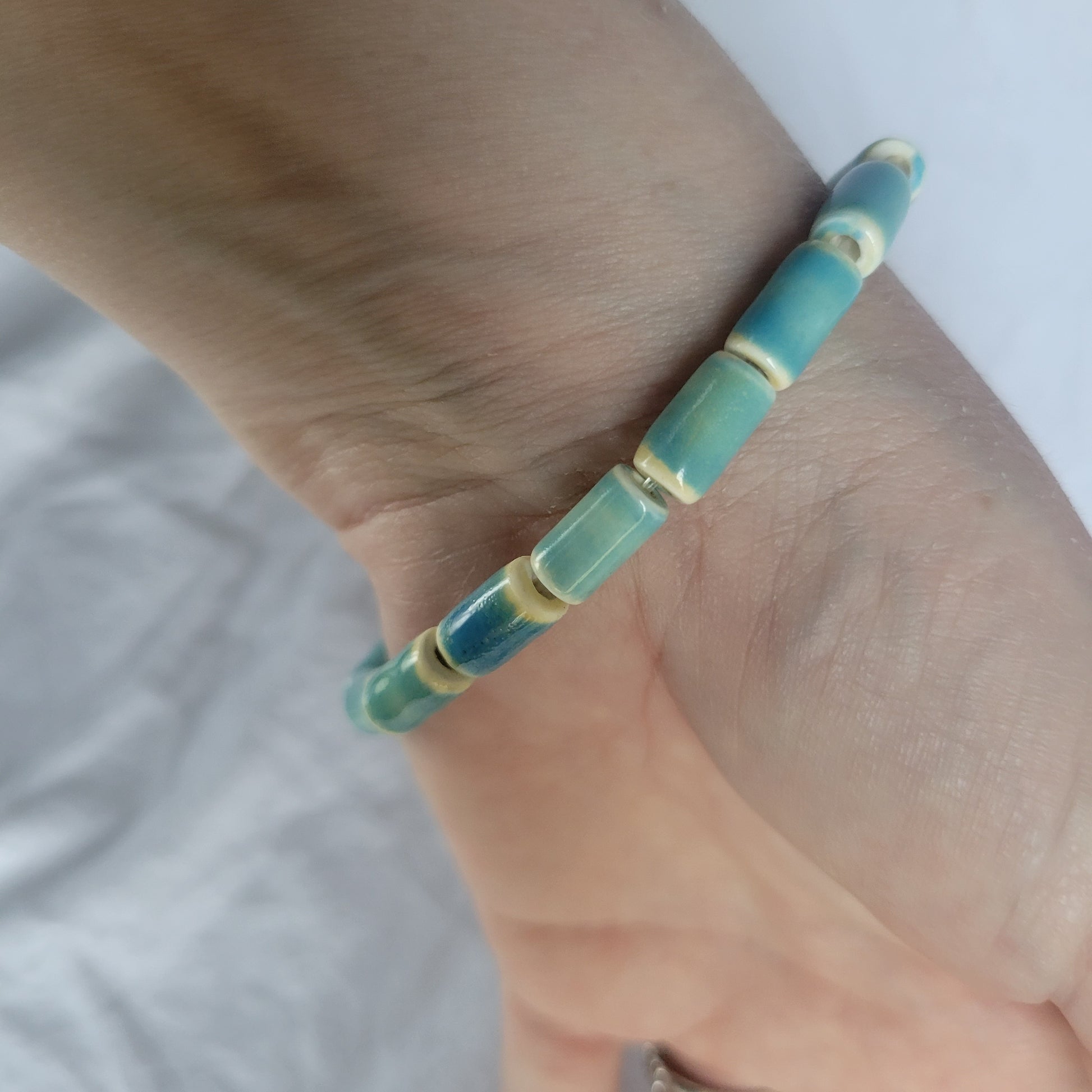 Discover a beautiful piece of everyday jewelry that stands out with this unique Blue Ceramic Tube Bracelet! Featuring blue ceramic tube beads crafted onto an elastic band, this bracelet will complete any look with an eye-catching yet subtle style. Spice up your wardrobe with this one-of-a-kind bracelet!