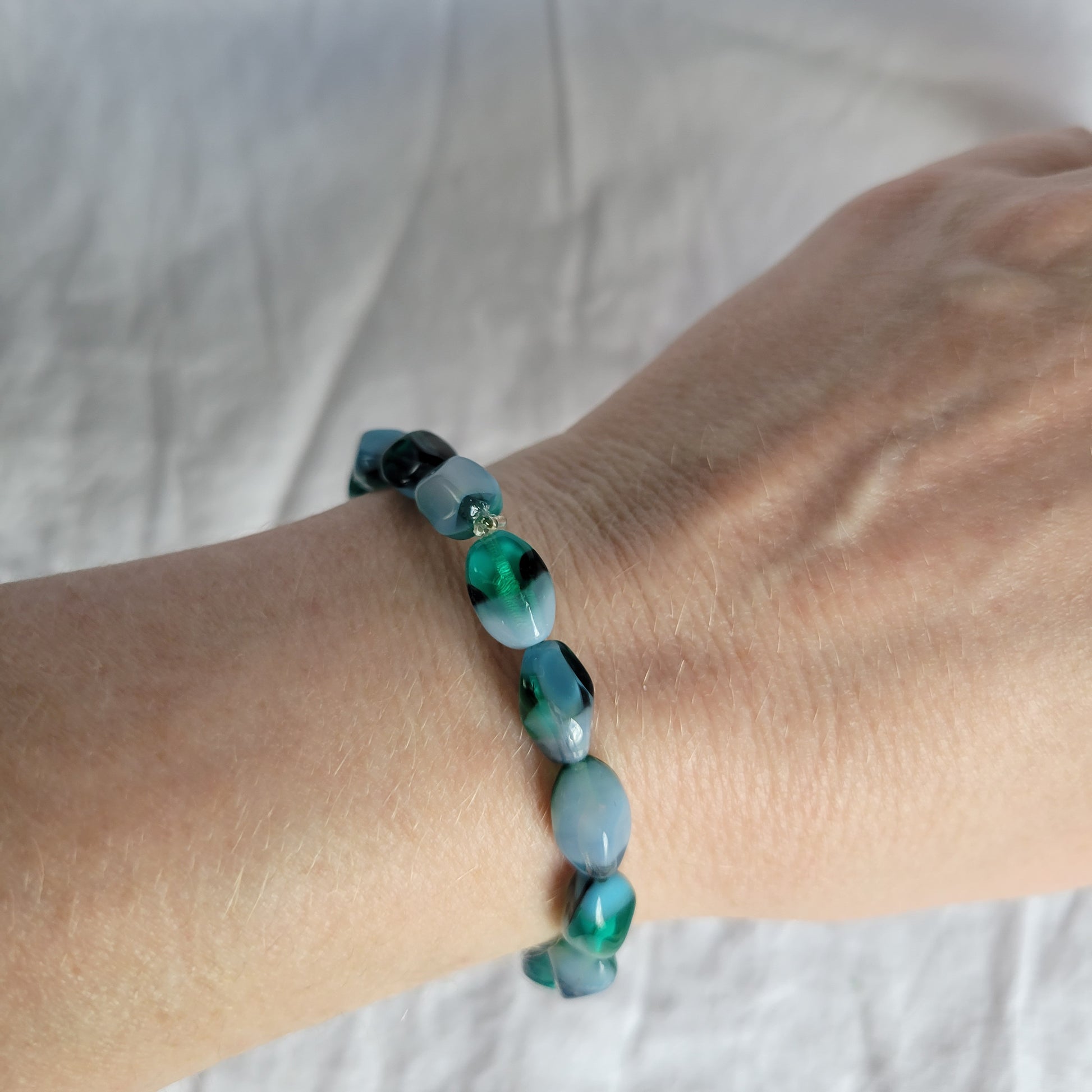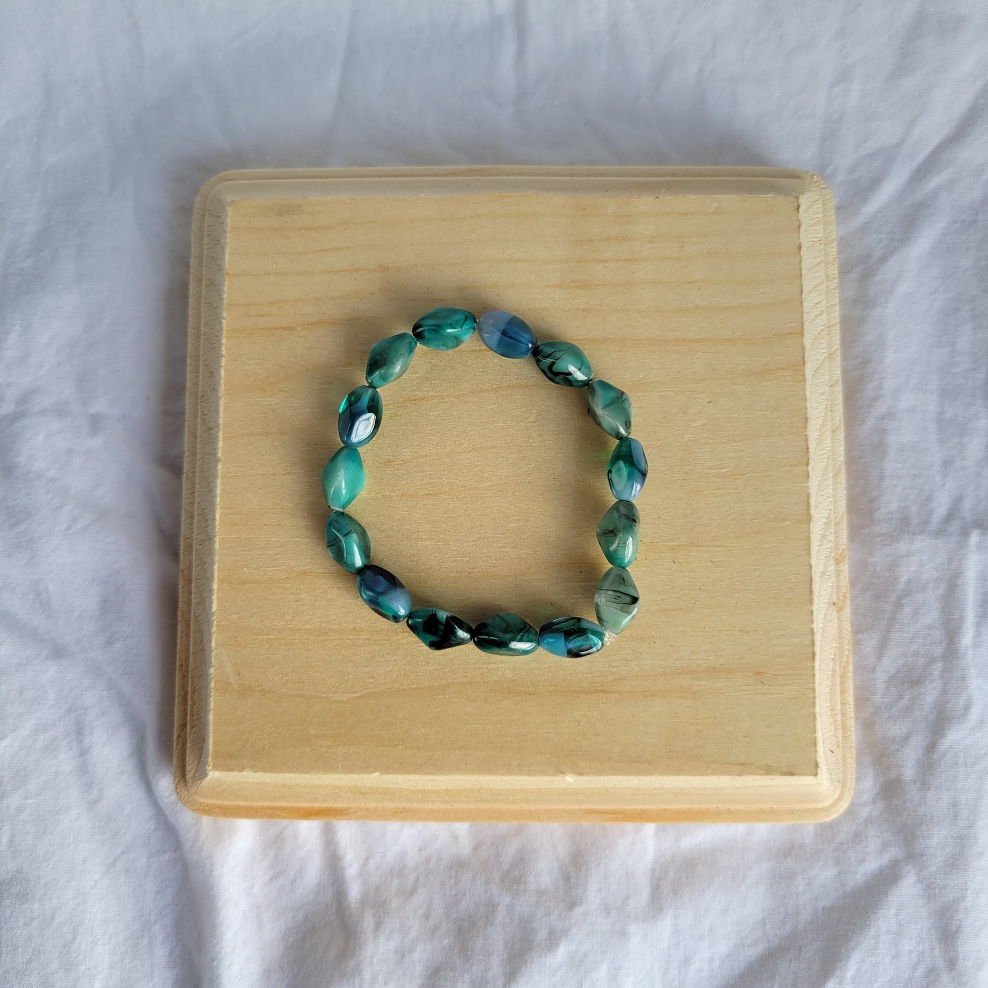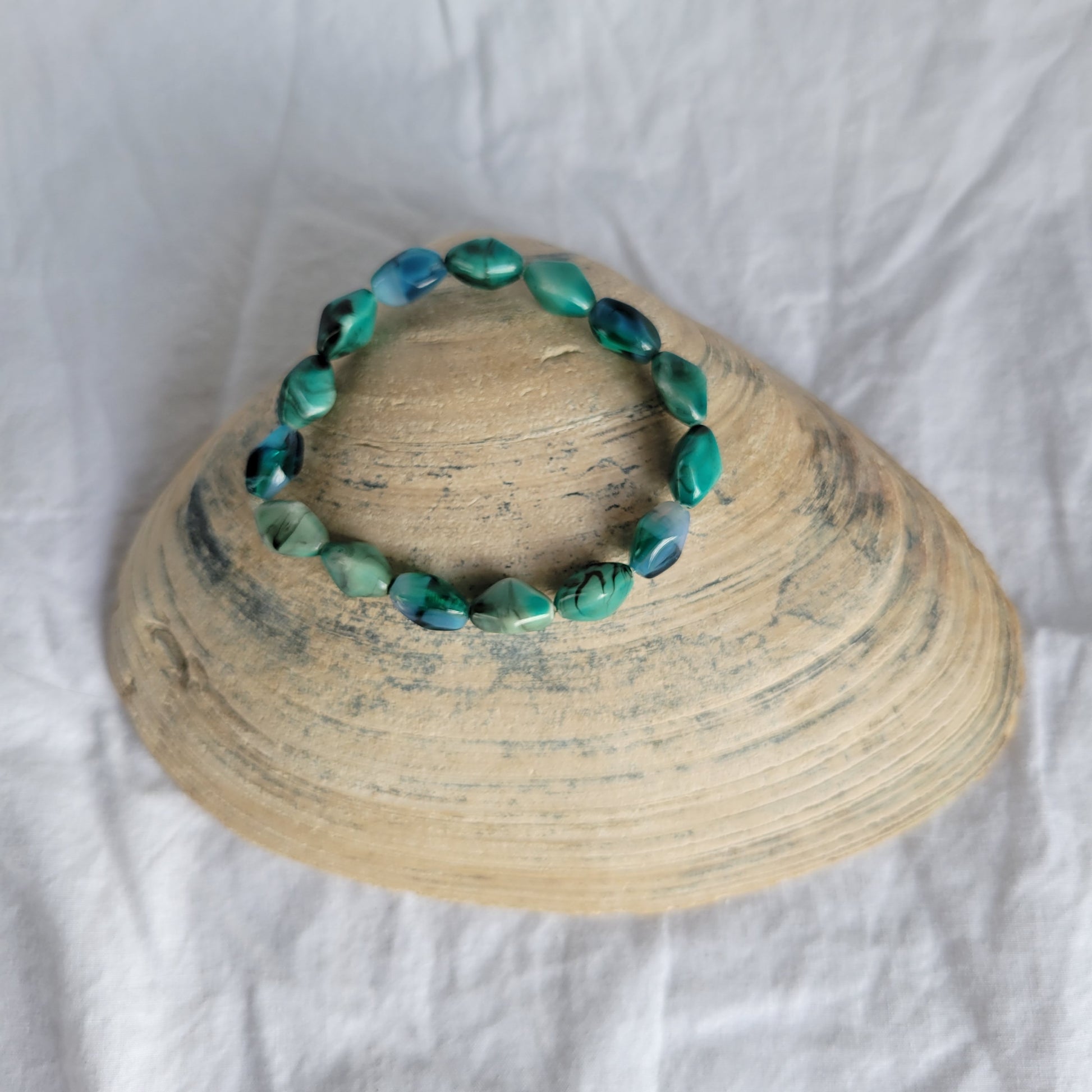 Add a splash of color to your style with this beautiful Blue Green Beaded Bracelet! Crafted with bright blue and green twisted barrel beads, you'll be sure to spark conversation and admiration! Add a fun and modern accessory to any outfit.