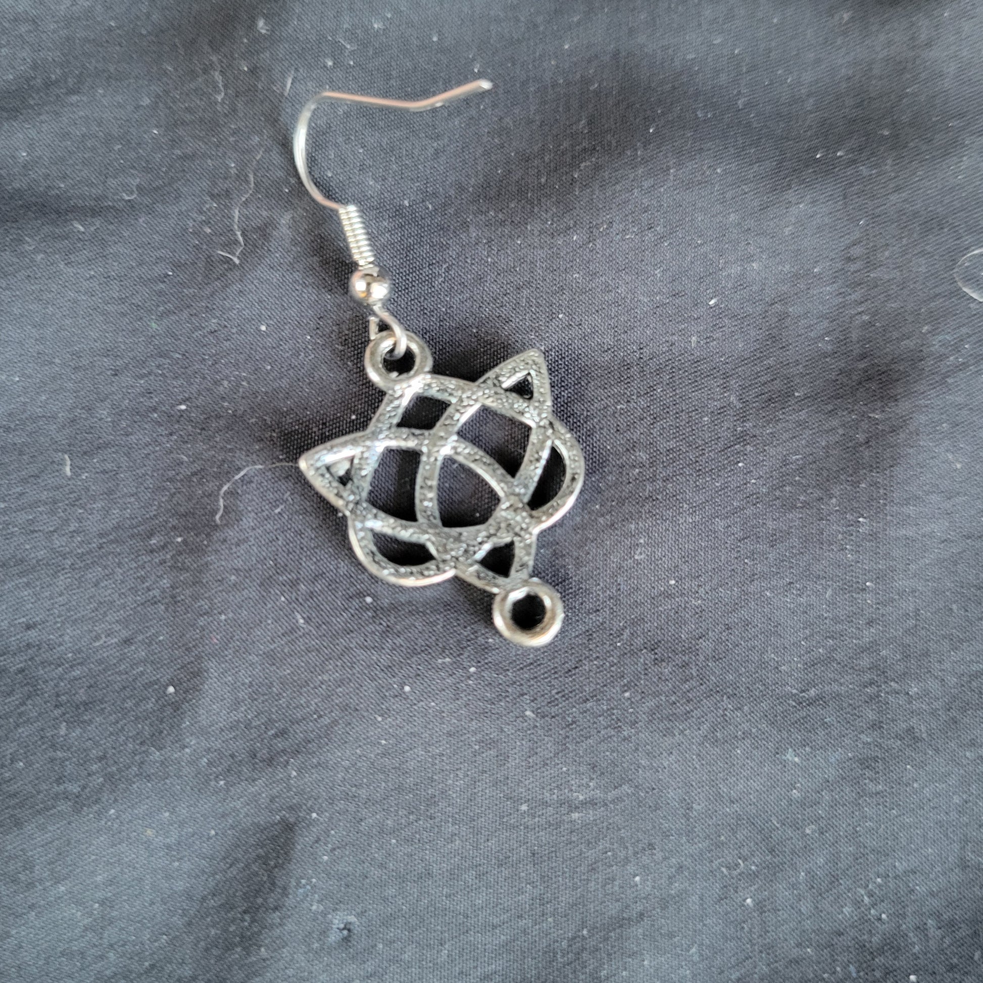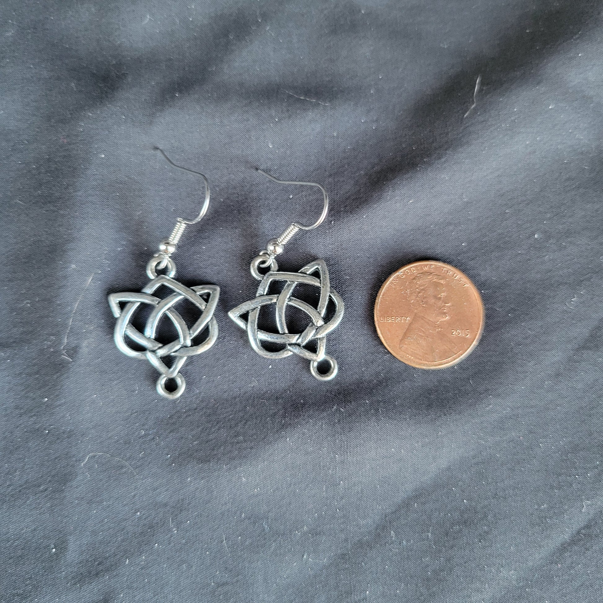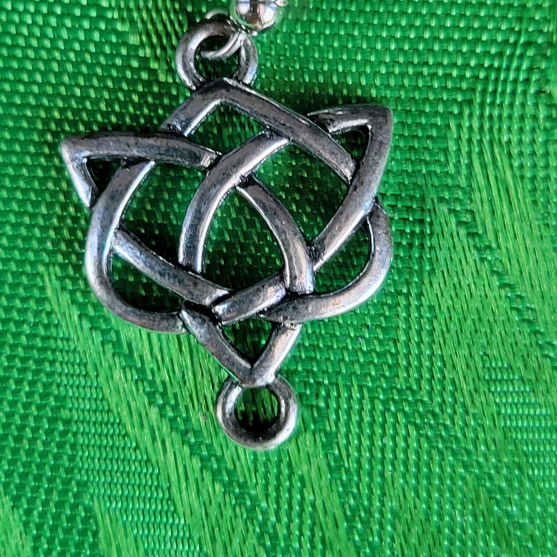 Add a touch of Celtic charm to your look with our Gunmetal Celtic Knot Earrings! These earrings feature a beautifully intricate Celtic knot design intertwined with an upside-down heart, making them a unique and eye-catching accessory. Made with earring hooks for easy wear, these earrings are perfect for any occasion. Enhance your style with these elegant and meaningful earrings.