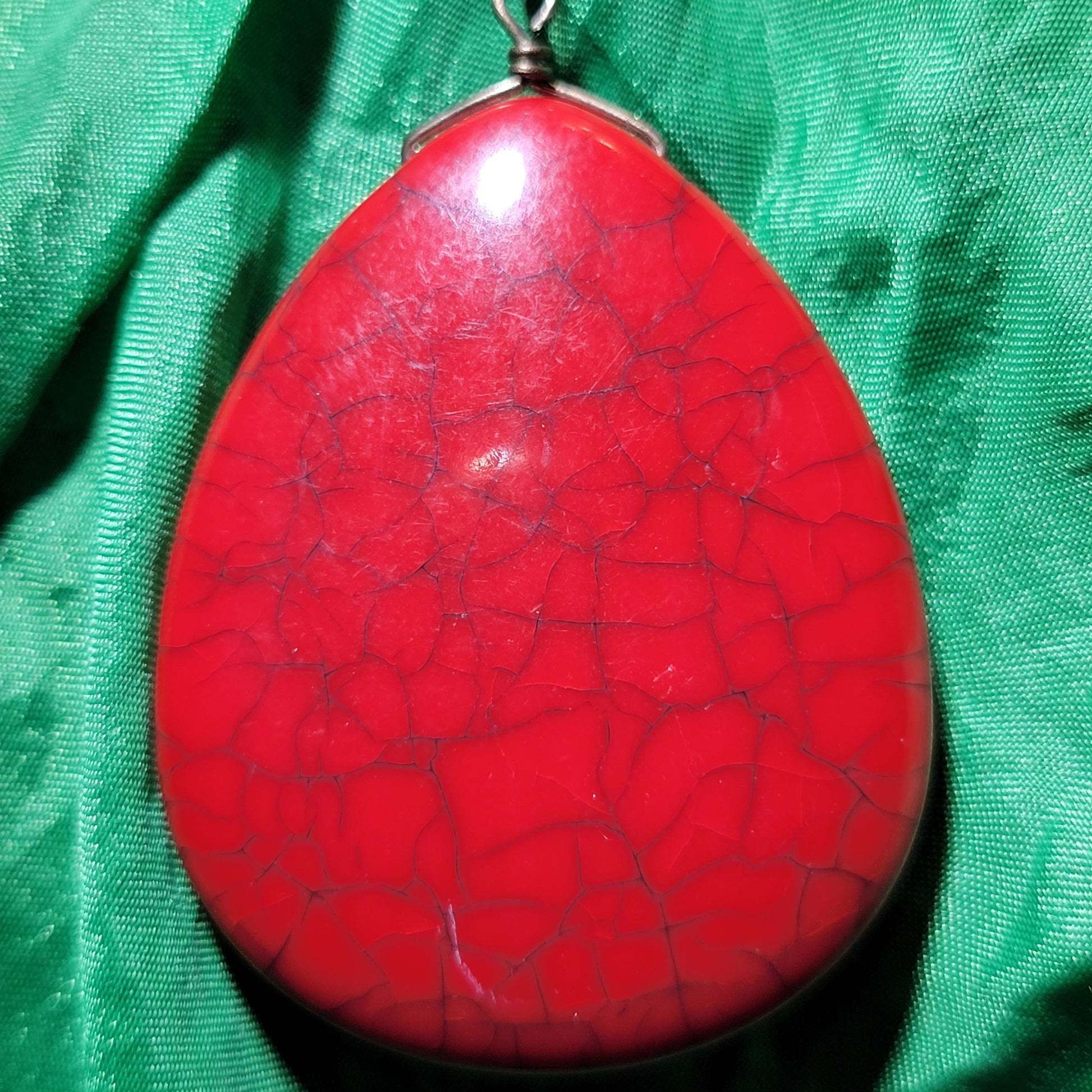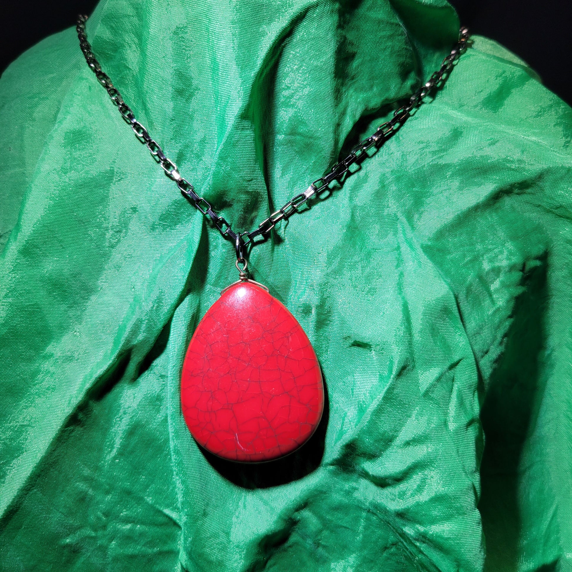 A large teardrop of crackled red jasper is the focal point of this gunmetal chain necklace. Red jasper is known to increase self-confidence and emotional protection and balance. Carry these benefits with you while wearing this unique necklace.