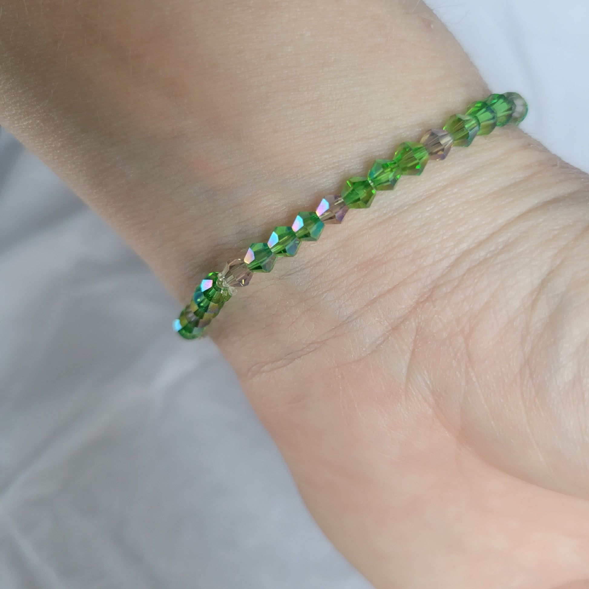 This is the perfect accessory for any occasion! Adorned with green and smoke bicone beads on elastic, this Green and Smoke Beaded Bracelet adds a touch of elegance and style to any outfit. Show off your unique charm in a way that no one else can!