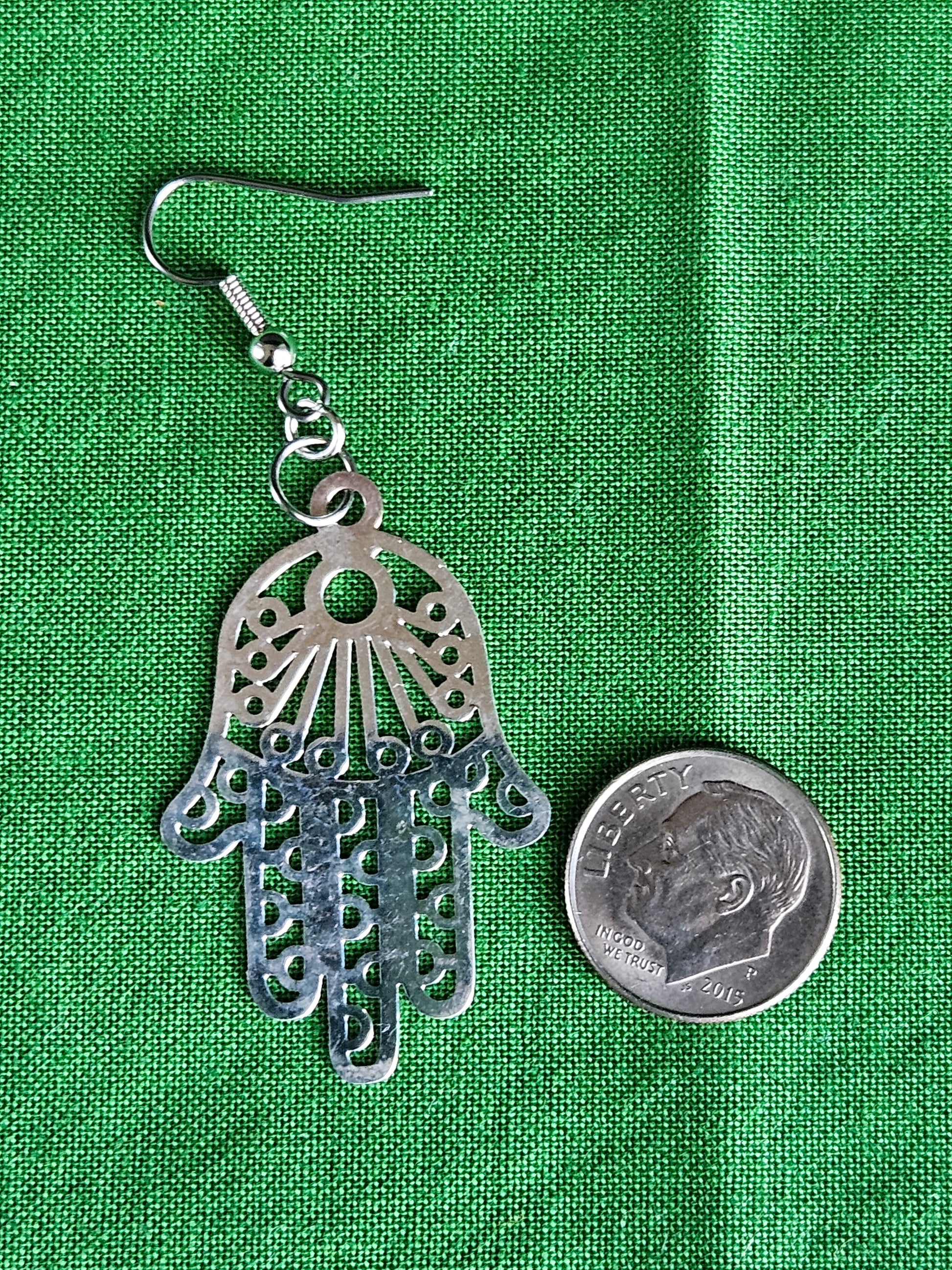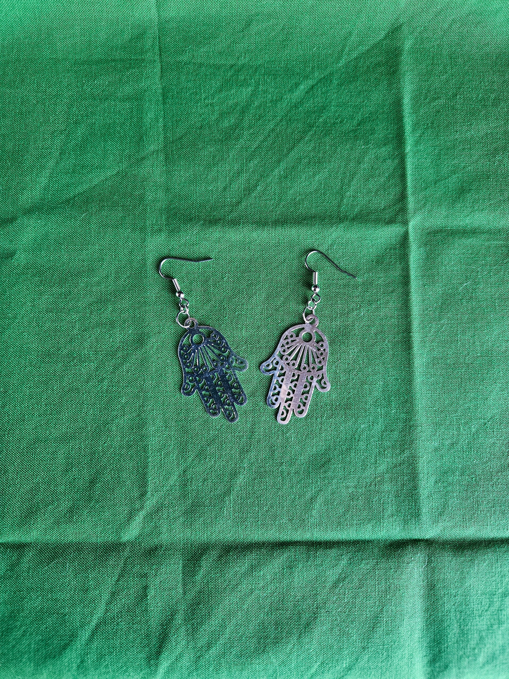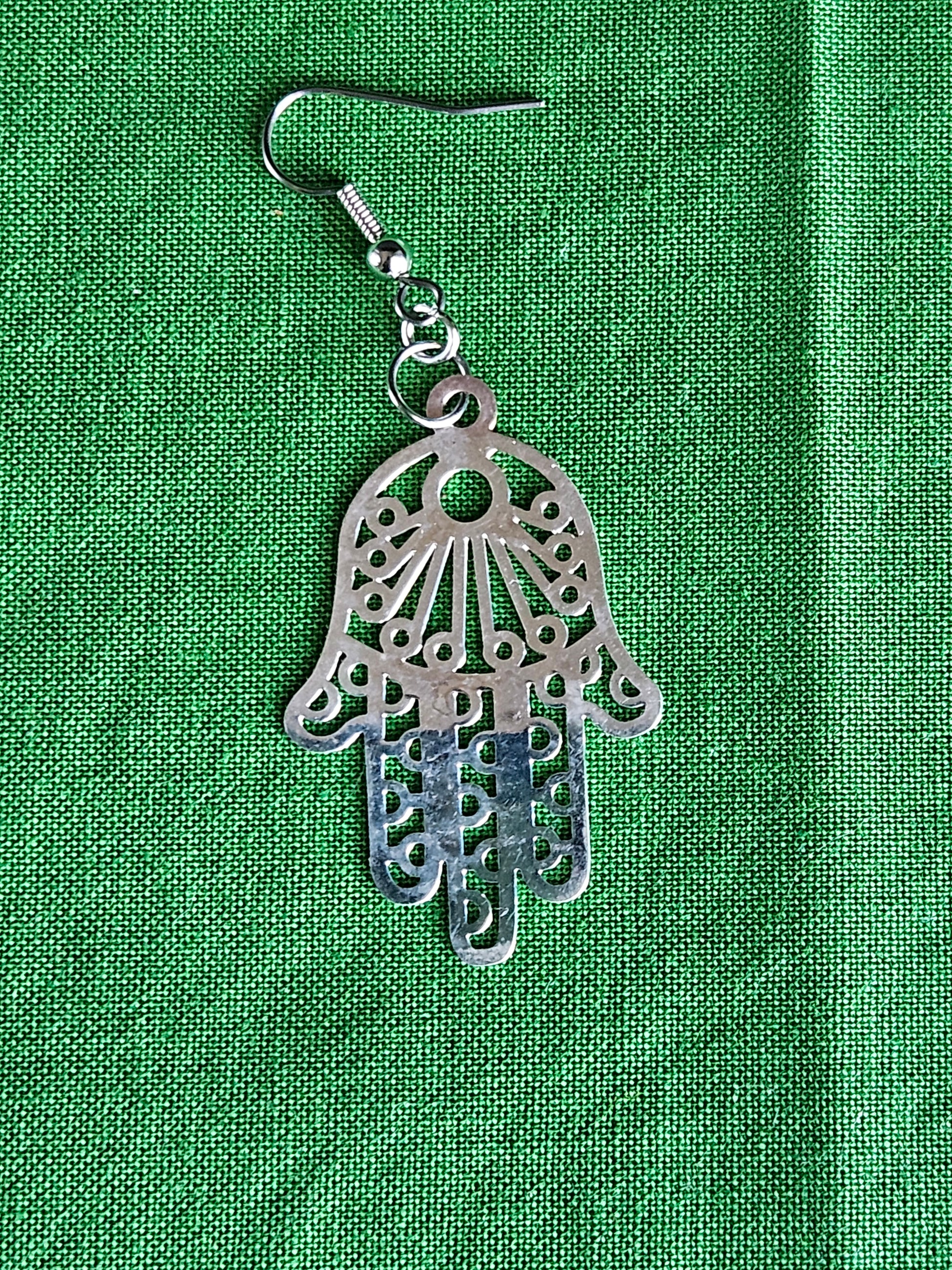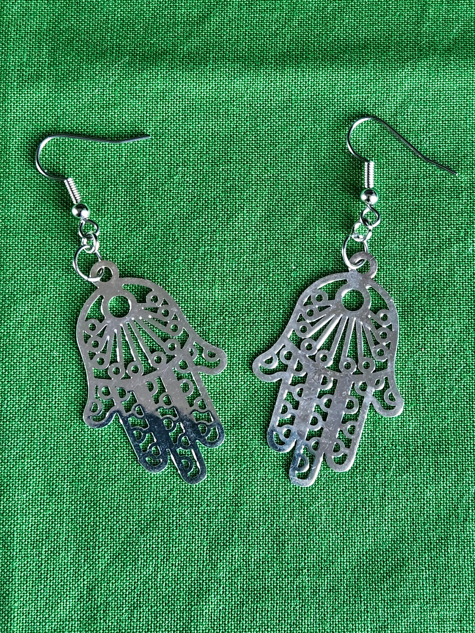 Embrace the ancient power and beauty of the Hamsa Hand Earrings. The delicate hamsa hand charms and jump rings hang gracefully from silver hooks, creating a stunning accessory. Bring protection, positivity, and style to any outfit with these unique and meaningful earrings.