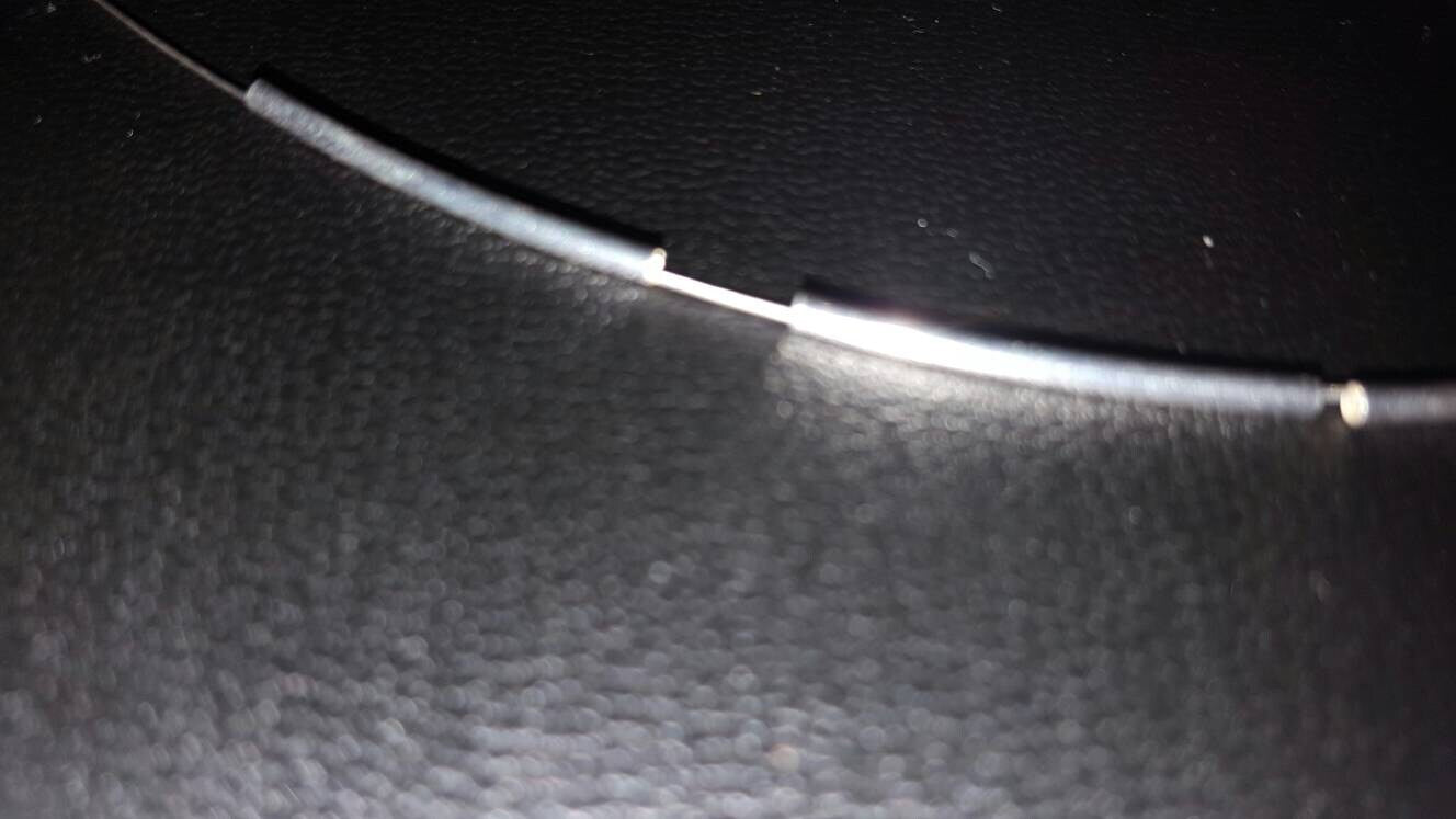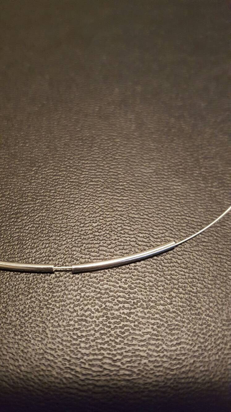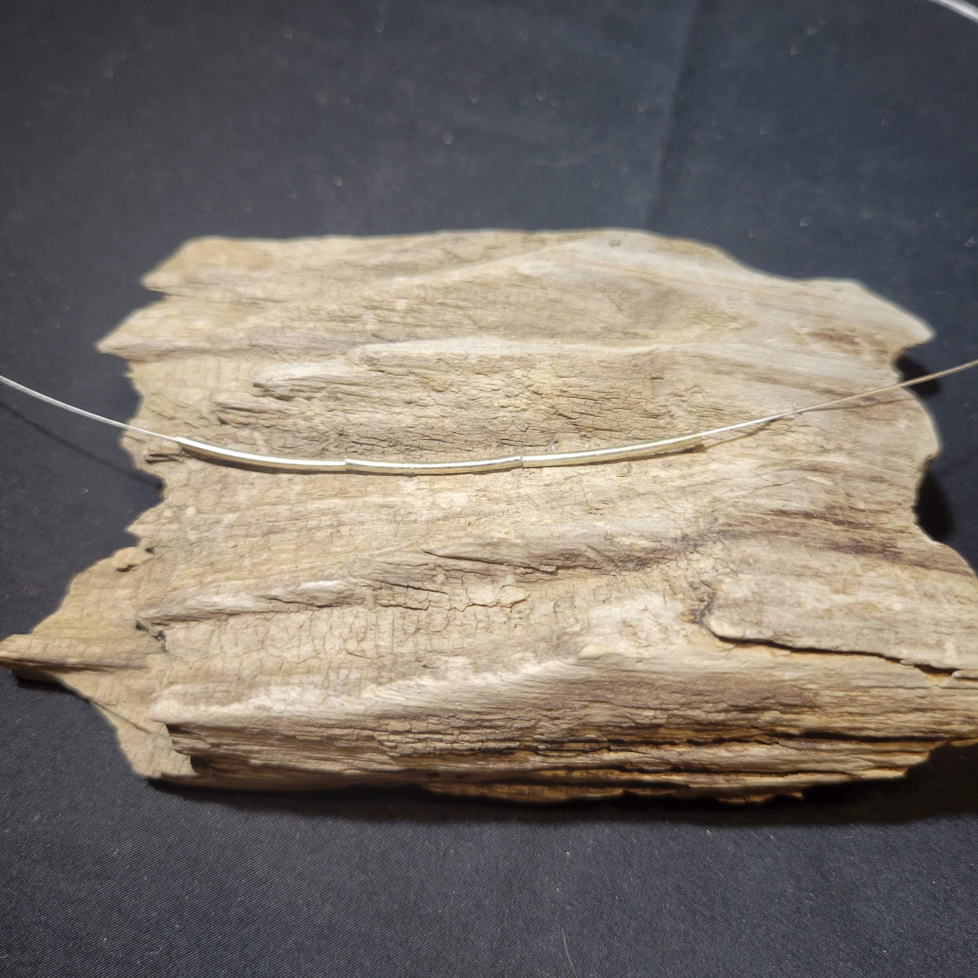 In the Tubes beaded necklace. This is one time that being in the tubes is a good thing. Flaunt this simple silver tube beaded necklace on its silver wire like life is grander than grand. This subtle statement would look great with a solid colored top to really make it shine...just like you.