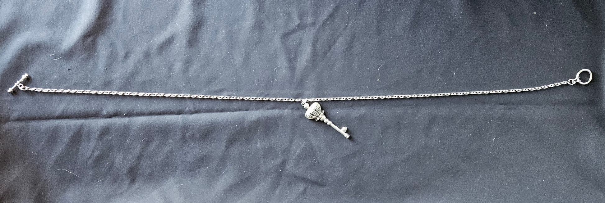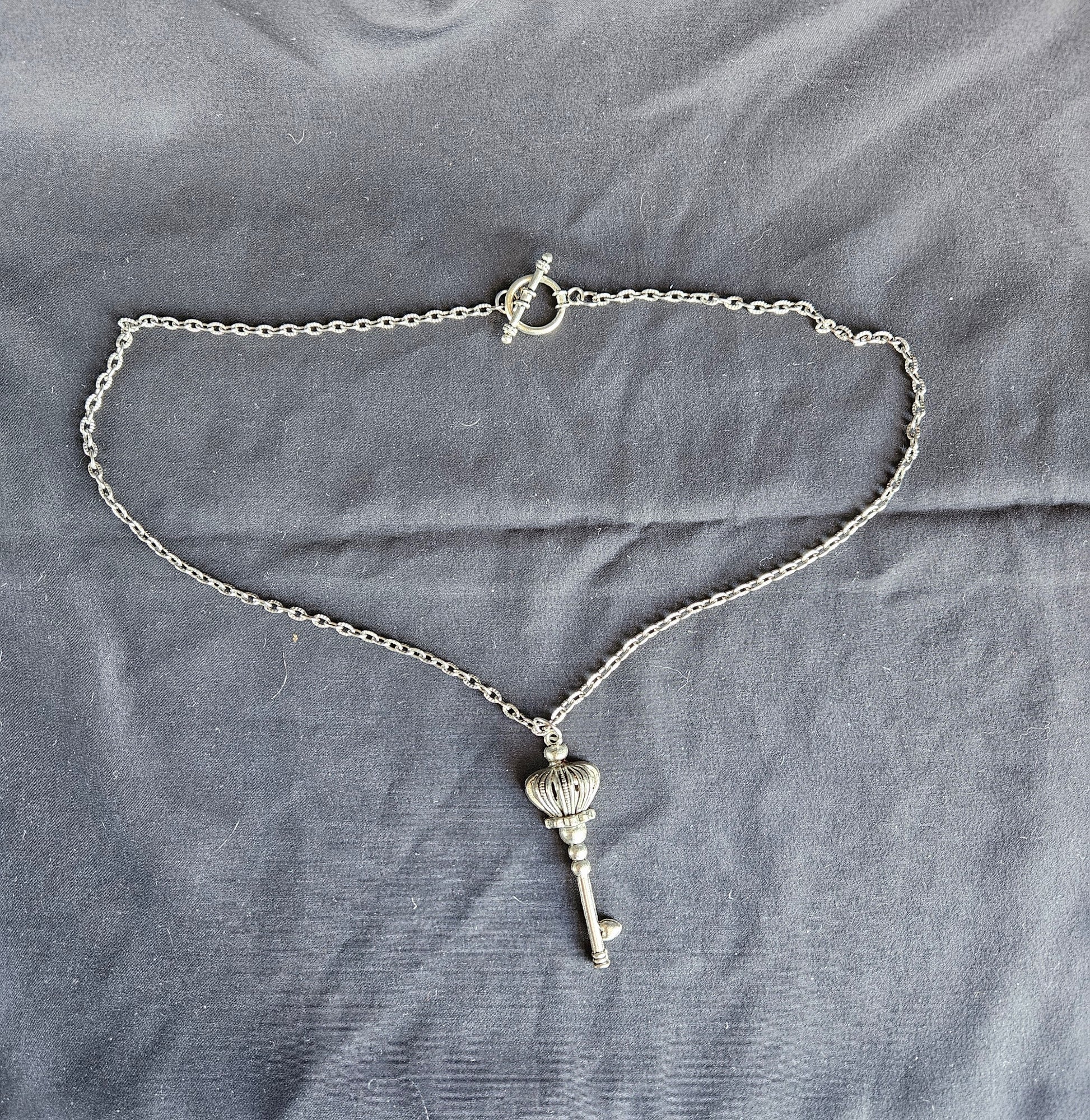 Unlock the beauty within with our Key Necklace. Featuring a stunning 2.25" key pendant on a 21.5" cable chain with toggle clasp, this necklace exudes elegance and sophistication. Perfect for adding a touch of charm and inspiration to any outfit. Embrace the power of the key and wear it with confidence!