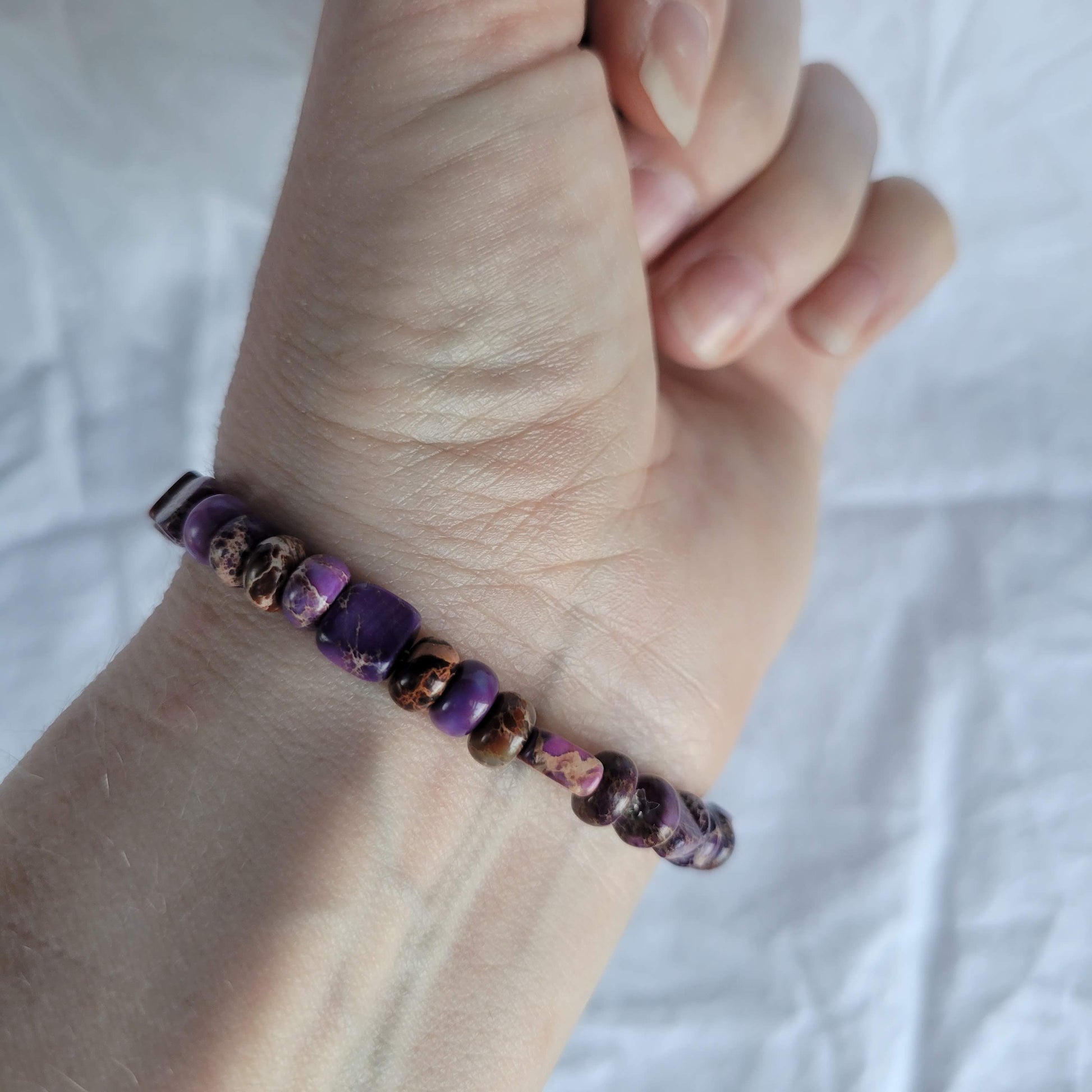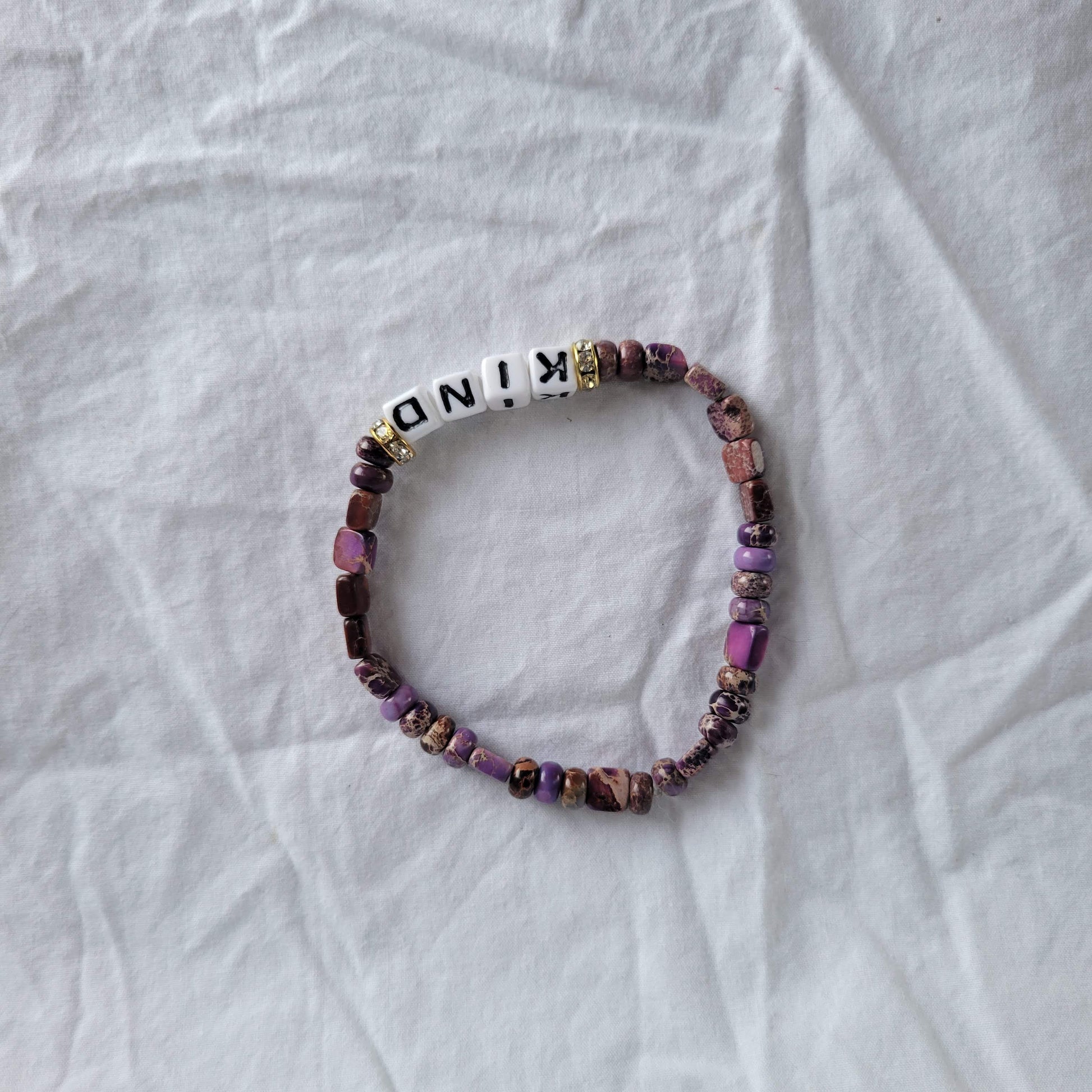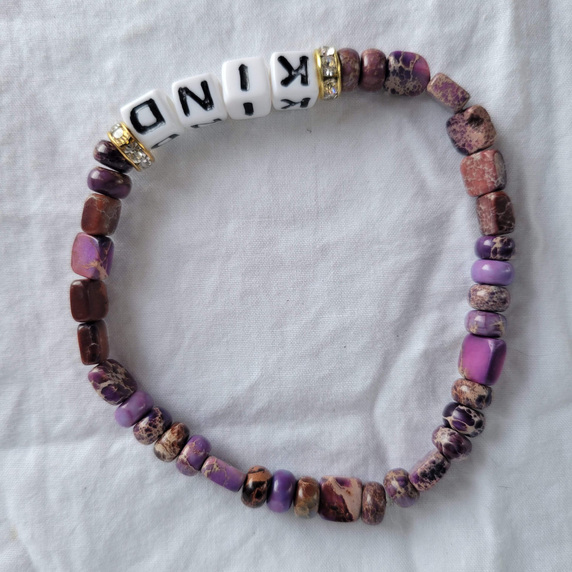 Make a statement with our Kind Beaded Bracelet. Adorned with gold studded spacers and beautiful imperial purple jasper beads, this bracelet exudes elegance and kindness. Show your unique style and spread positivity with the Kind Beaded Bracelet.