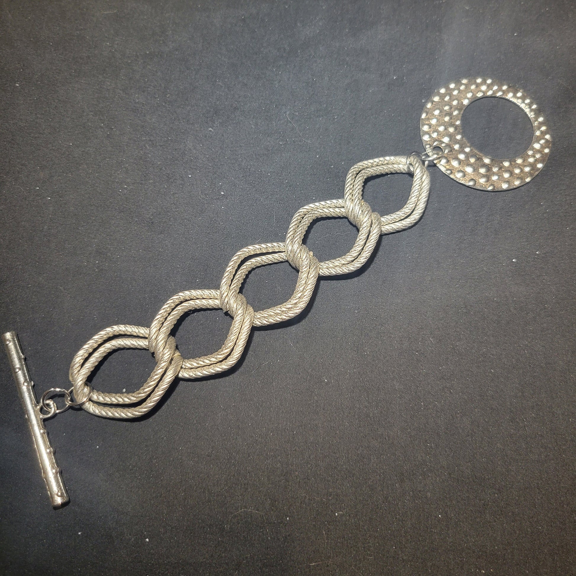 Make a statement without saying a word with this large double curb chain link bracelet with a large toggle clasp. This oversized bracelet will complement most outfits for business or play.