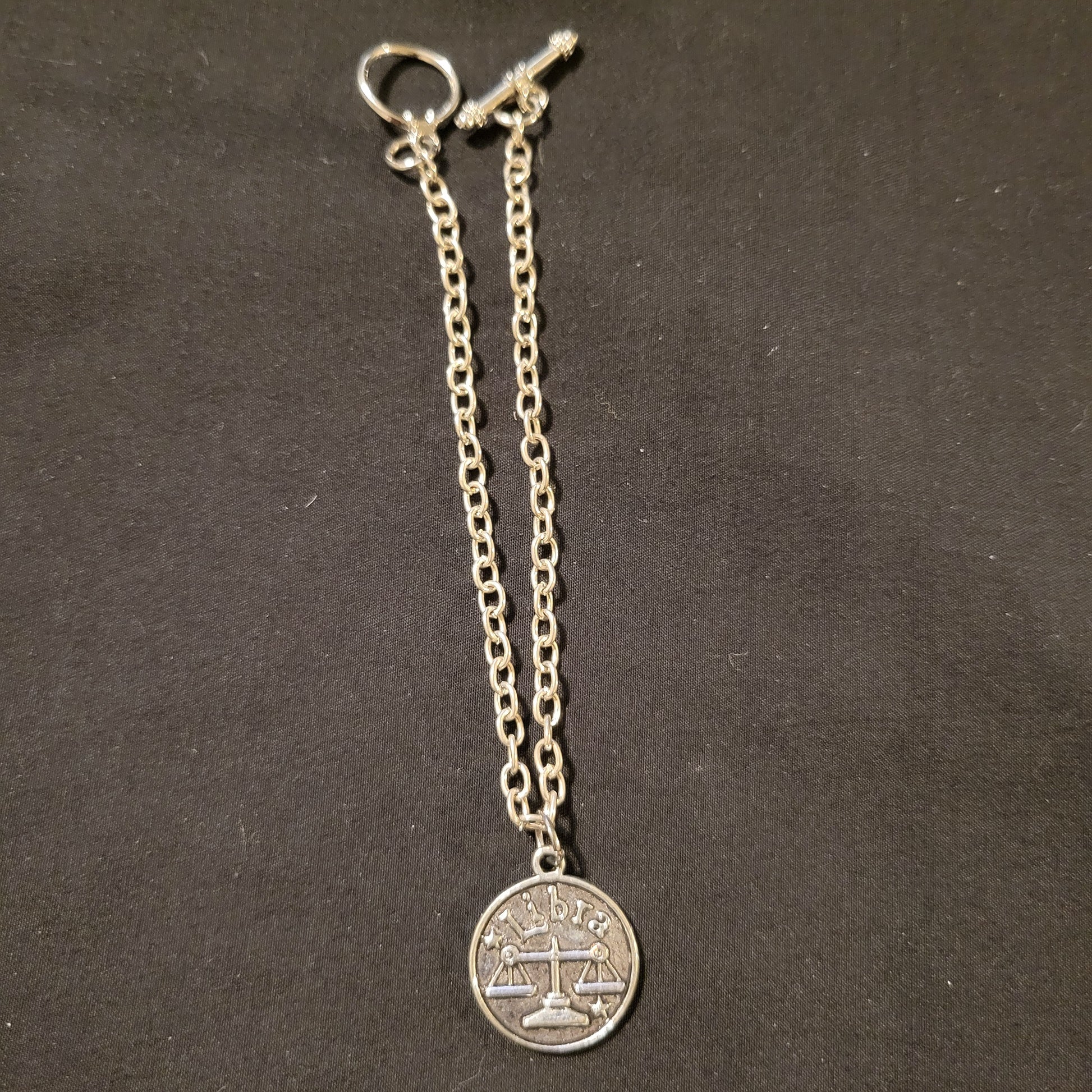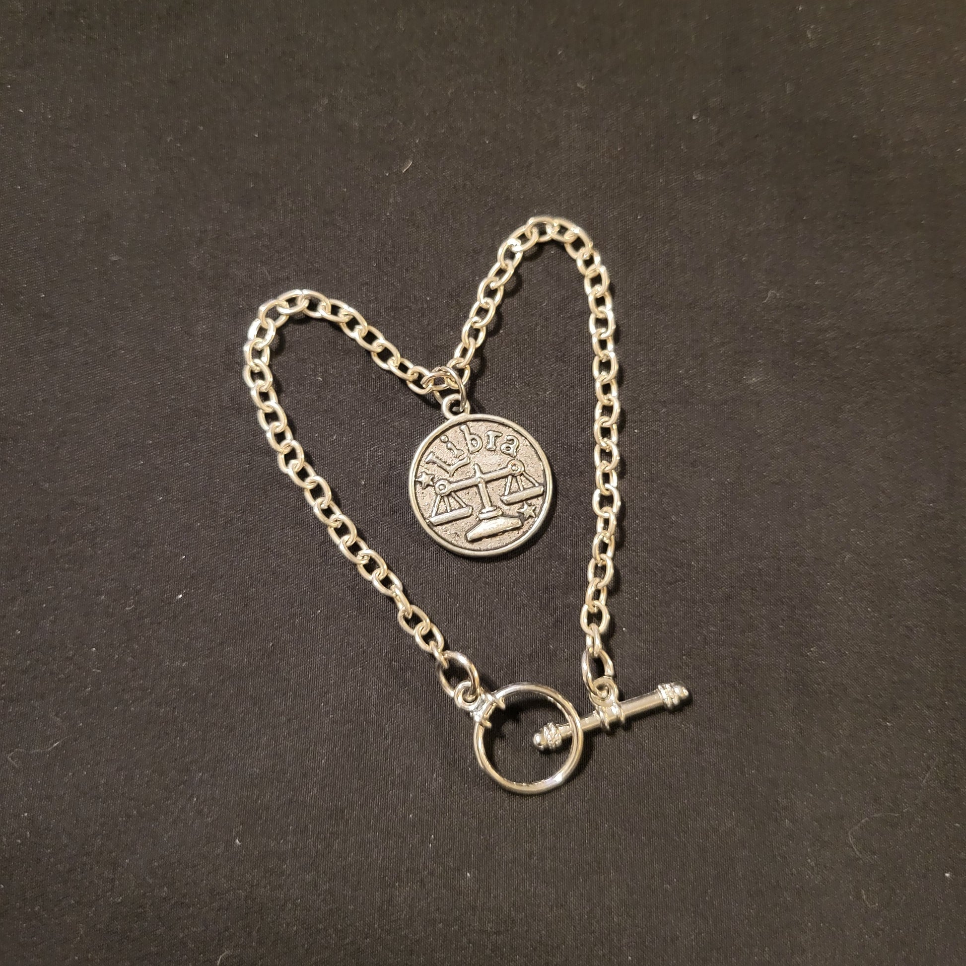 Add balance and charm to your life with our Libra Charm Bracelet. The stunning libra charm dangles from a 7.25" chain bracelet with toggle clasp, making it the perfect accessory for any outfit. Embrace your zodiac sign and make a statement with this unique and stylish bracelet.