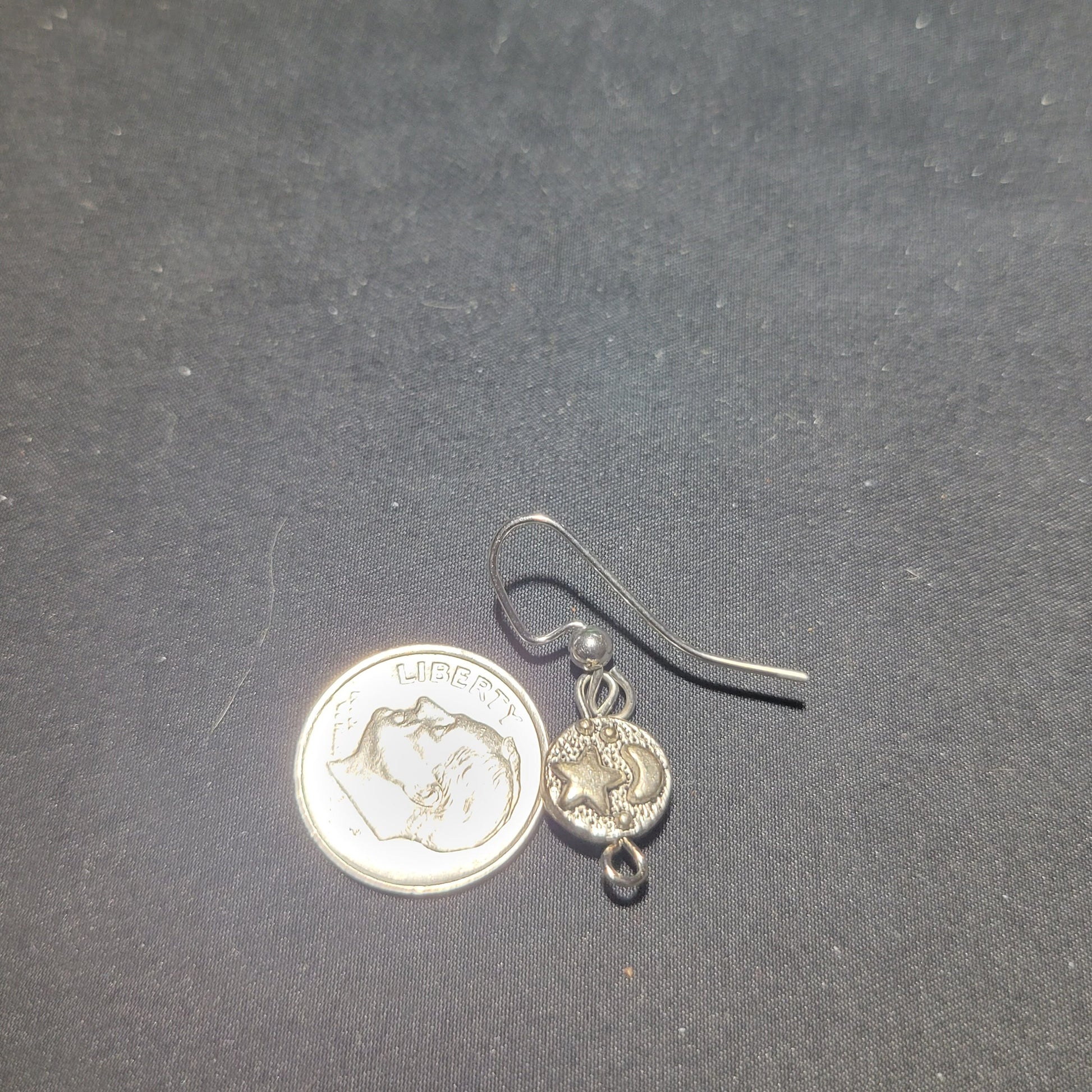 If you like the moon and stars as I do, these earrings are a subtle homage to that love. These small round charms have a small crescent moon and one star on them and hang from a simple ear-wire hook. For stargazers and night lovers alike, these earrings are a great gift for them or yourself.