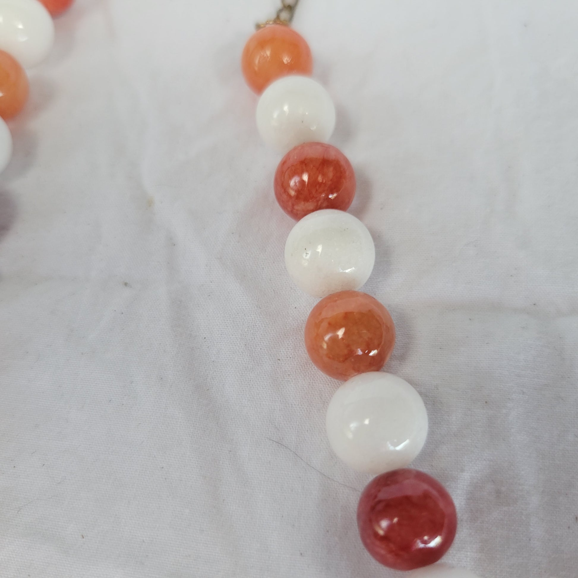 This unique necklace is a sure way to make a fashion statement. Crafted with bold orange and white round beads on a gold-colored wire, it's an eye-catching accent to any ensemble. At 23" long, its hook closure offers a perfect fit. Experience style and confidence with this chic accessory!
