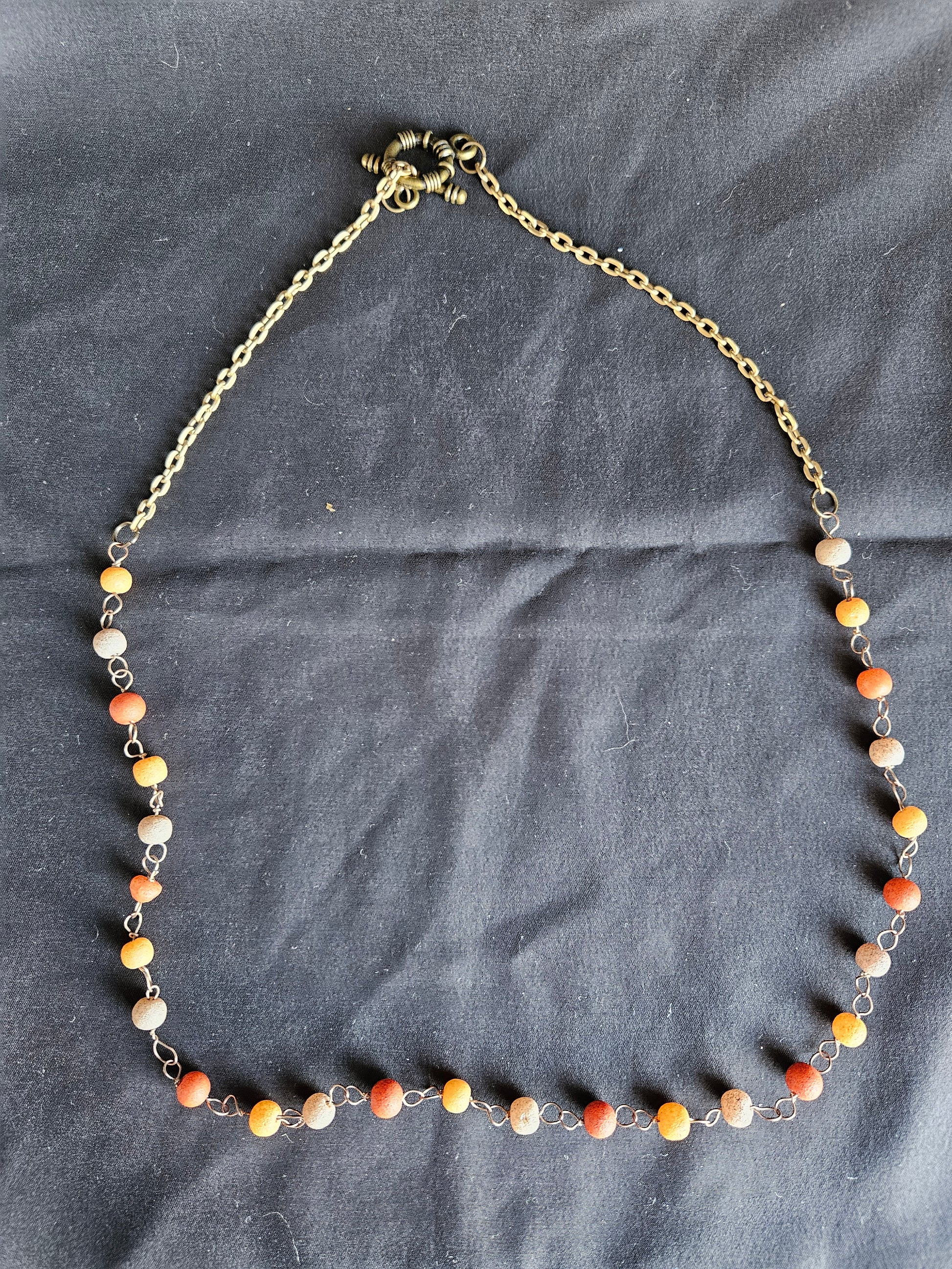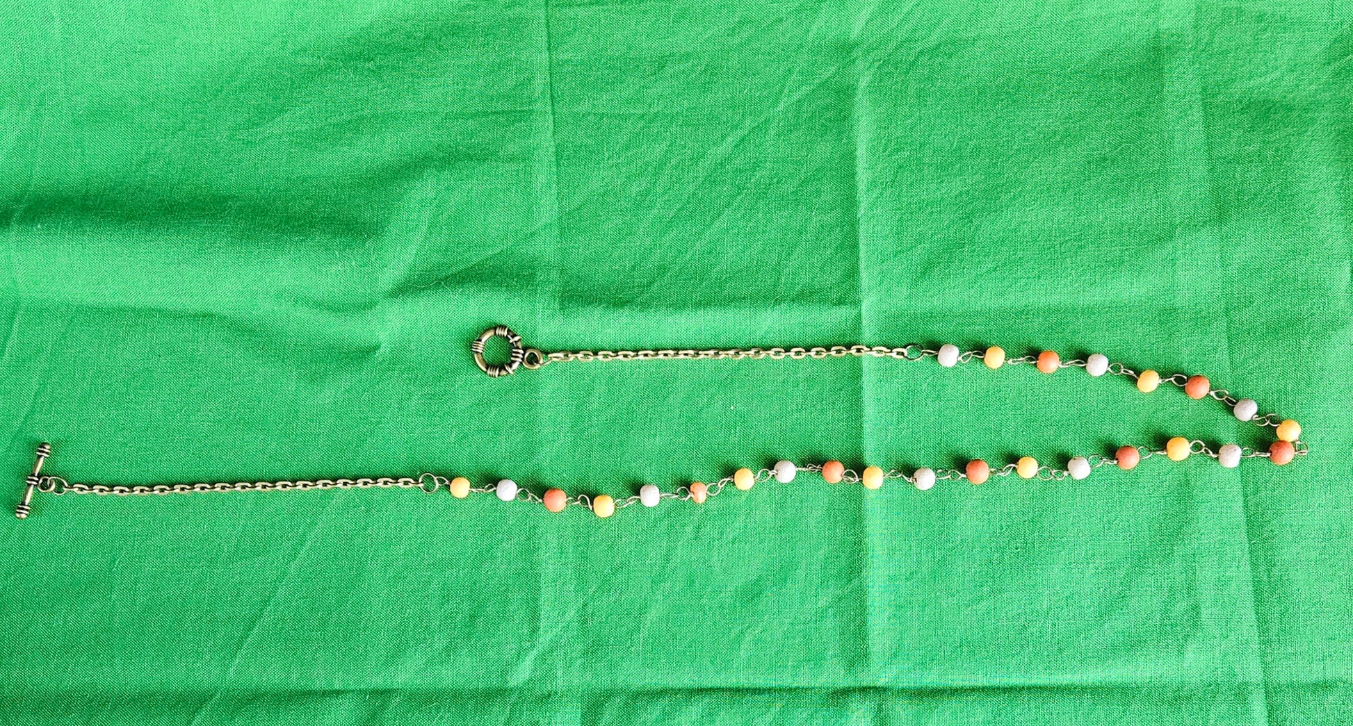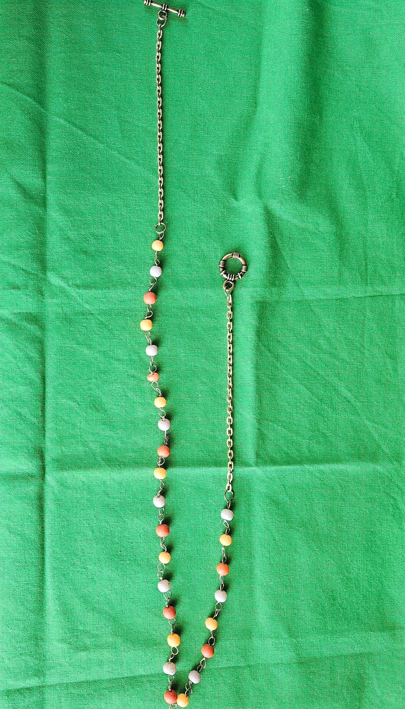 Add a pop of color to your outfit with our Bead Chain Necklace! Made with a 24" brass cable chain and multi-color bead chain, it's perfect for any occasion. The toggle clasp adds a touch of charm and ensures a secure fit. Stand out and make a statement with this unique and stylish necklace.