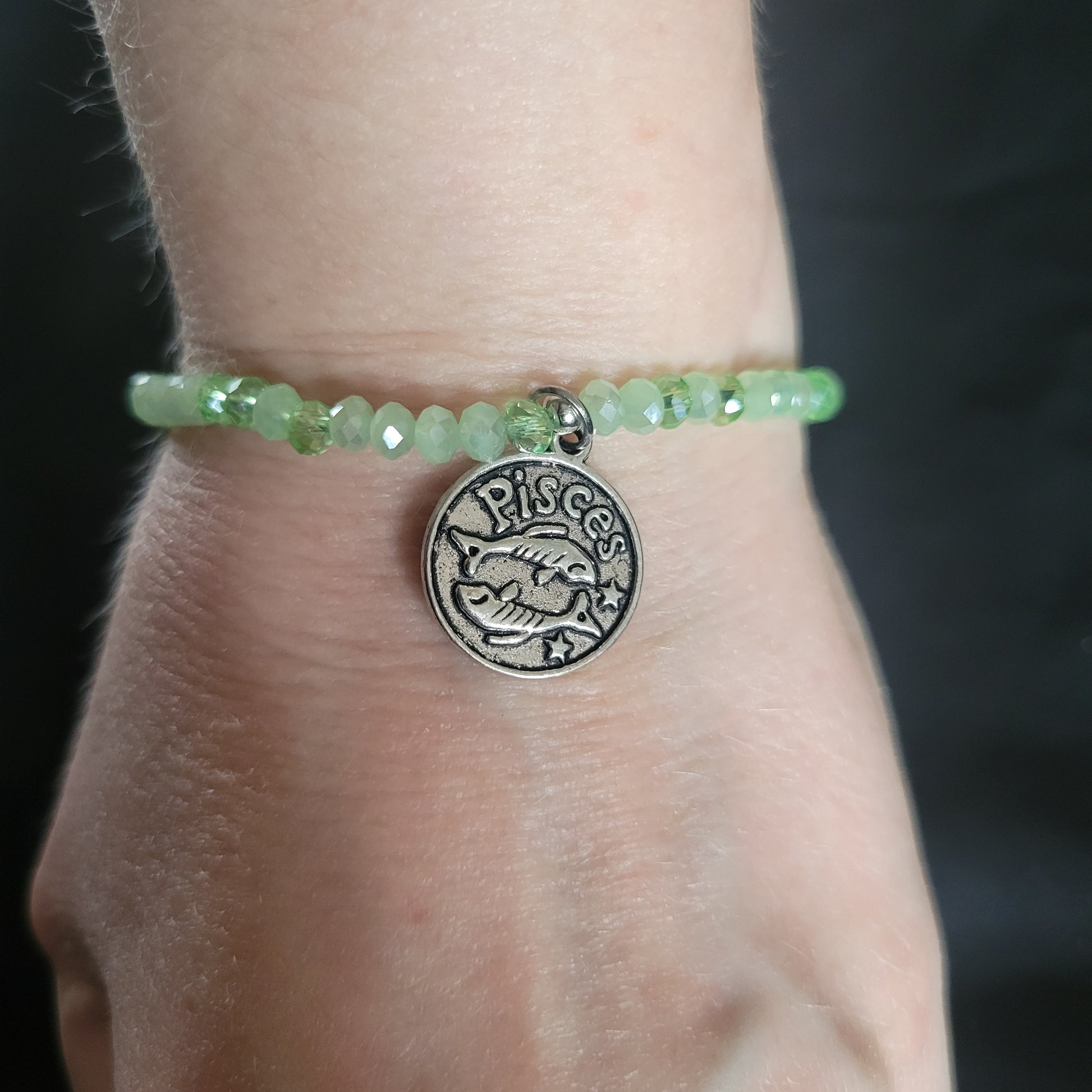 This Pisces Beaded Bracelet features light green cut glass beads and a Pisces charm on an elastic band. Made from high-quality materials, this bracelet is both stylish and durable. Perfect for any Pisces looking to add some personality to their outfit.