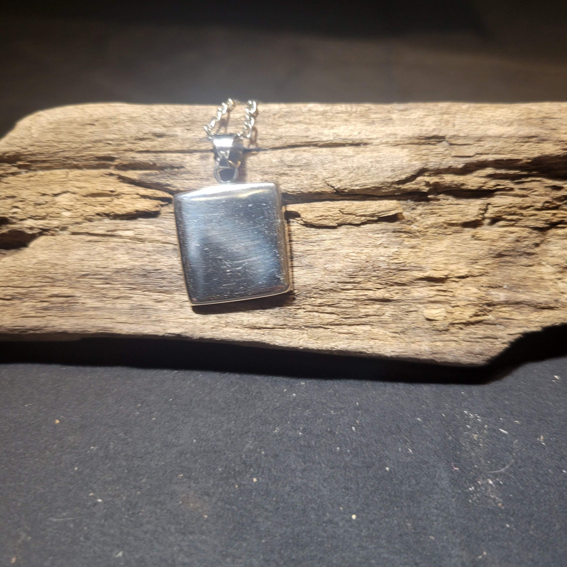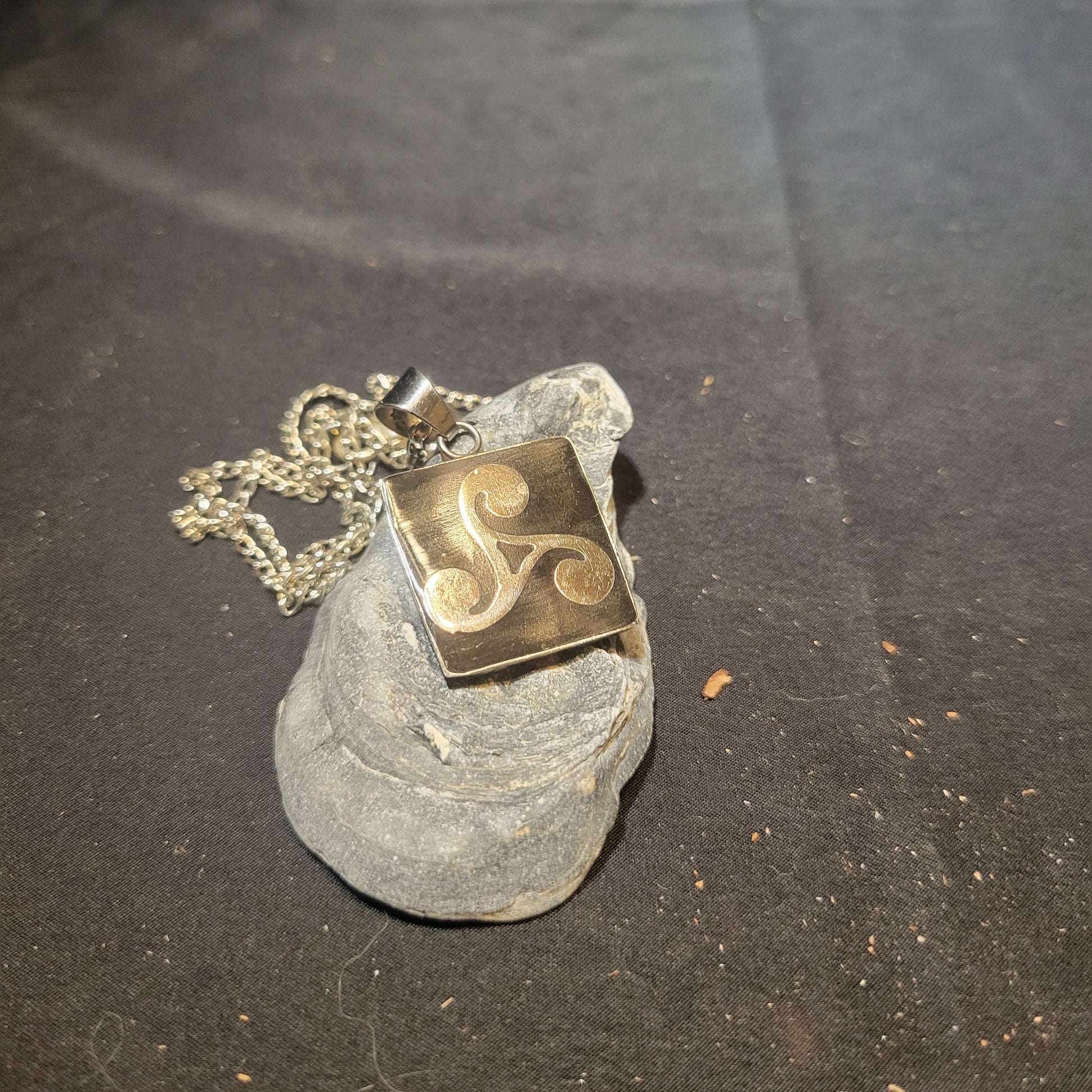 This stylish Triskelion Pendant Necklace features a unique silver swirl on a black square for a sleek, modern look. Perfect for adding a touch of sophisticated style to any outfit. Dare to stand out!