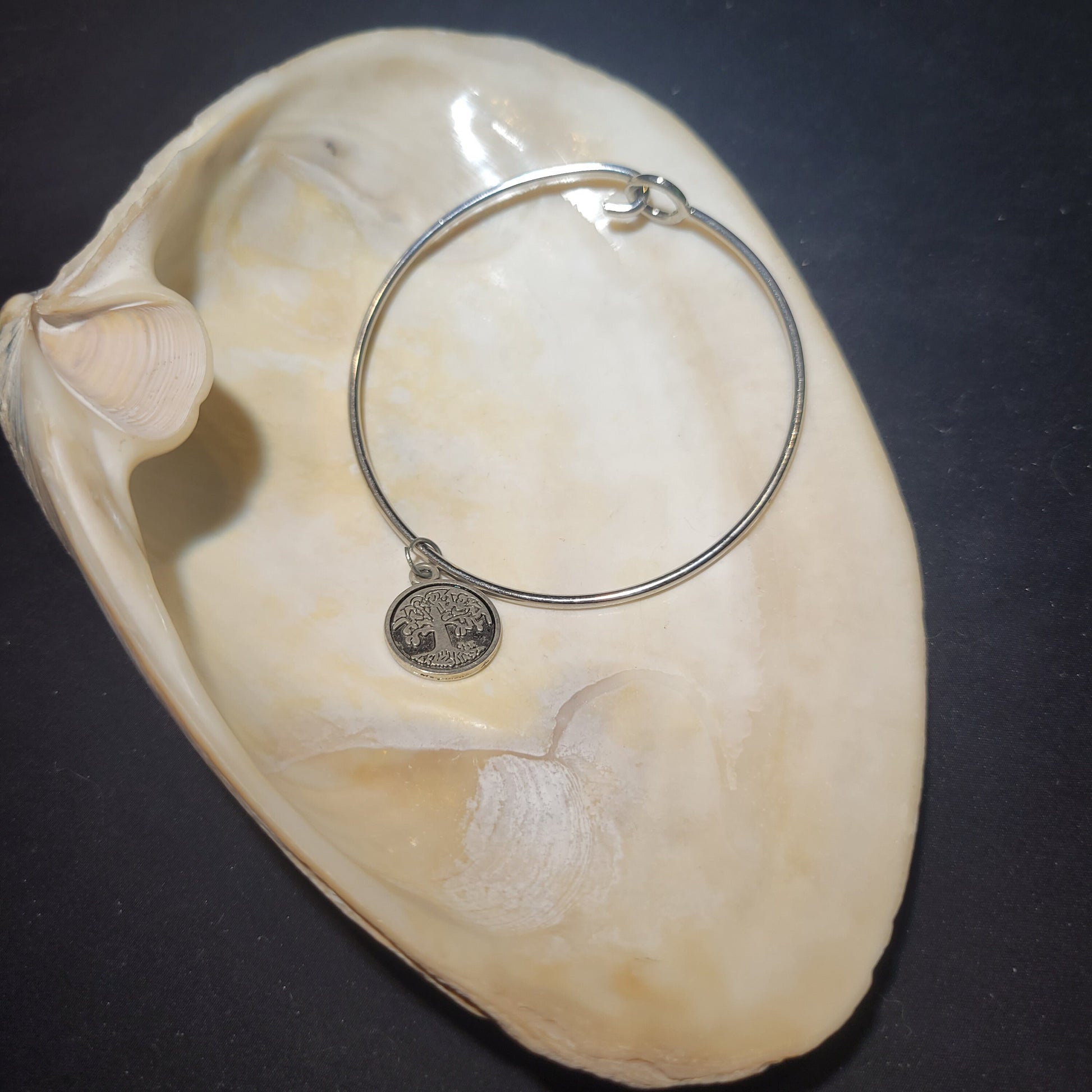 Materials: Tree of Life charm, rigid bracelet, Curb chain, Toggle clasp