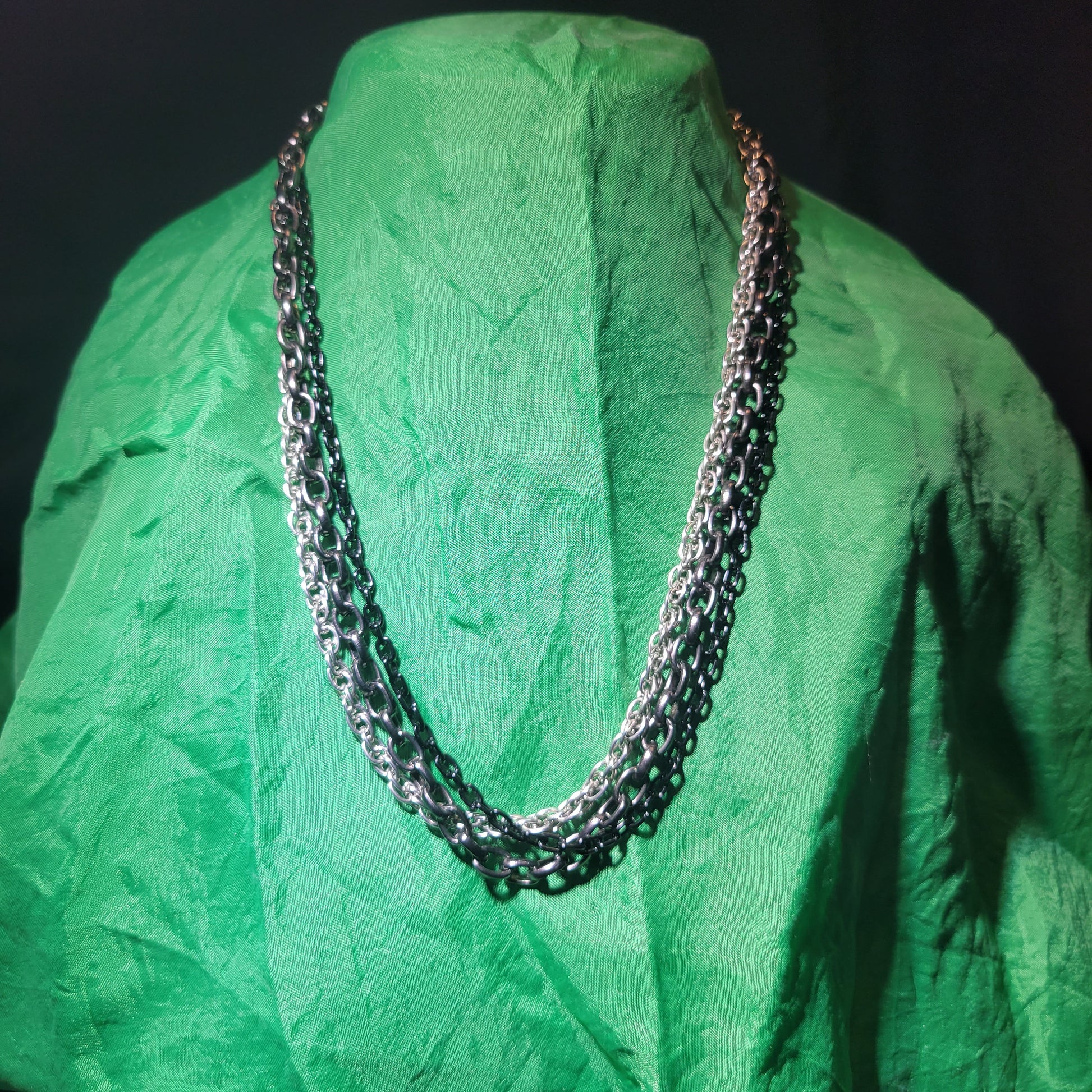 Add a hint of glamour to your style with this classy triple-chain necklace. It's made of a lightweight, durable material that offers long-lasting wear, perfect for daily use. Its shining three-chain design adds a captivating touch to your look. Make the most of your wardrobe with this shimmering necklace!