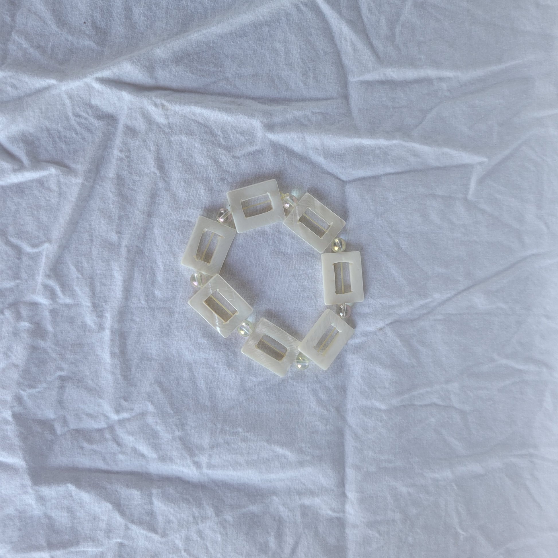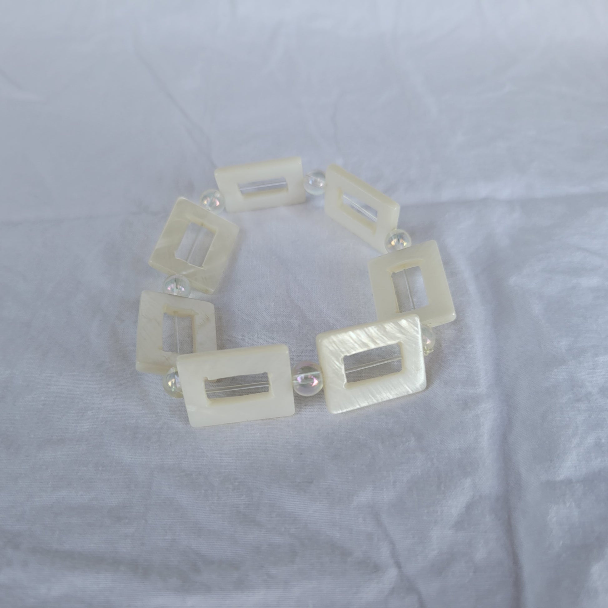 Transform your look with the White Square Shell & Clear Beaded Bracelet. Showcasing elegant white shell squares and round clear beads on a durable elastic band, this bracelet makes for a unique and stylish accessory. Create timeless memories with this beautiful piece!
