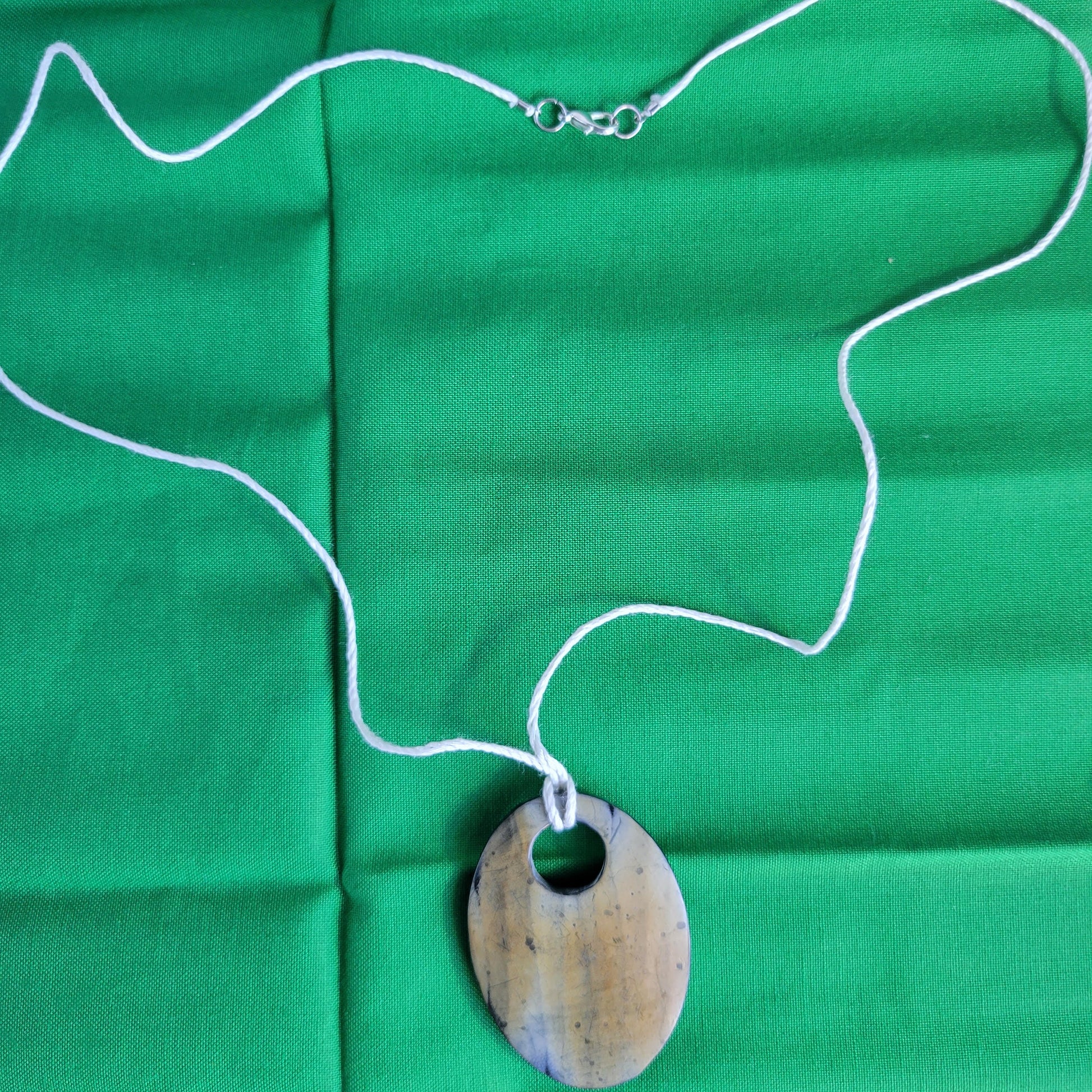 2" wood grain pendant on 27" white twine with lobster clasp